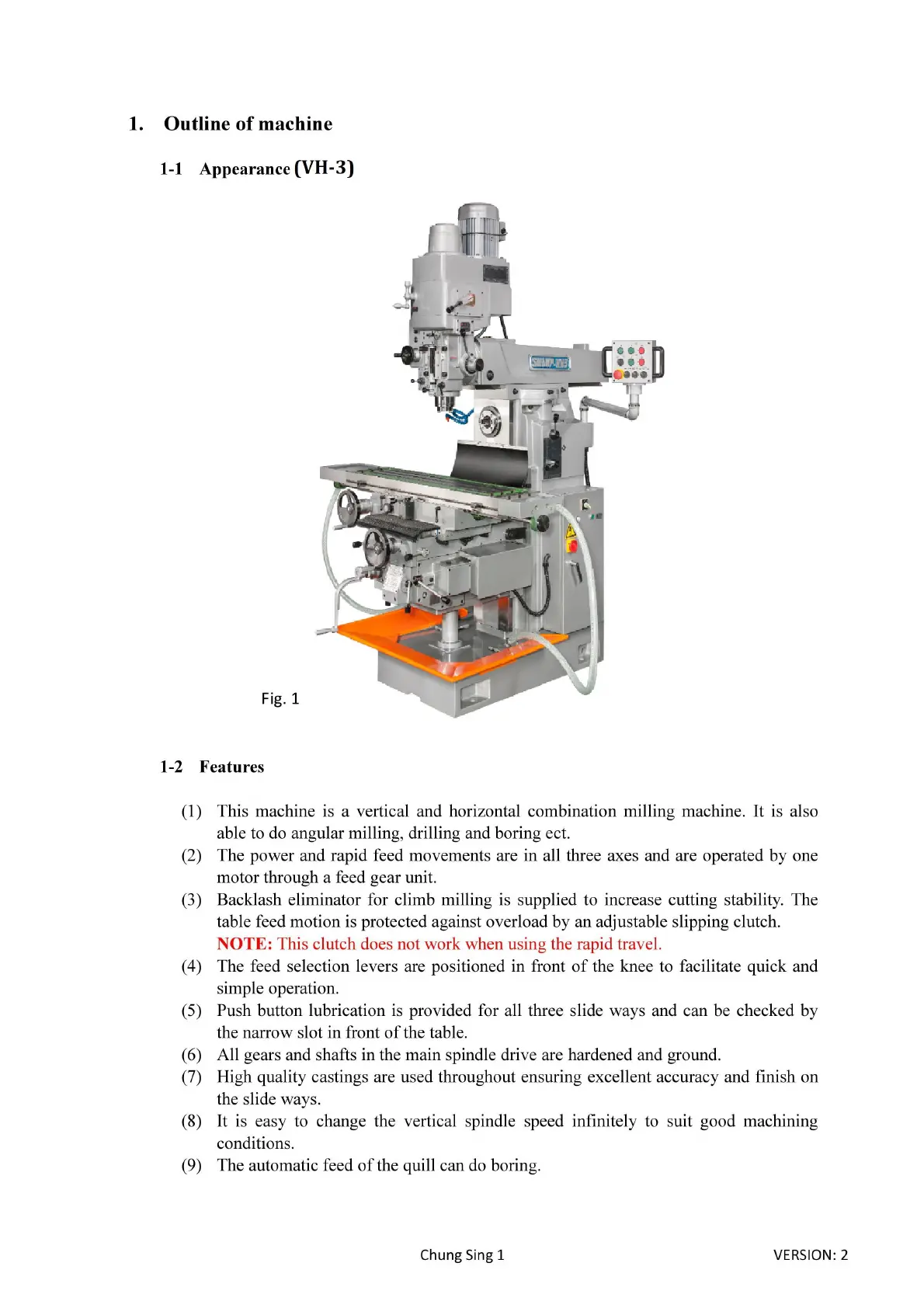 Sharp VH3 Mill - 1 Outline of Machine 1-1 Appearance; Features