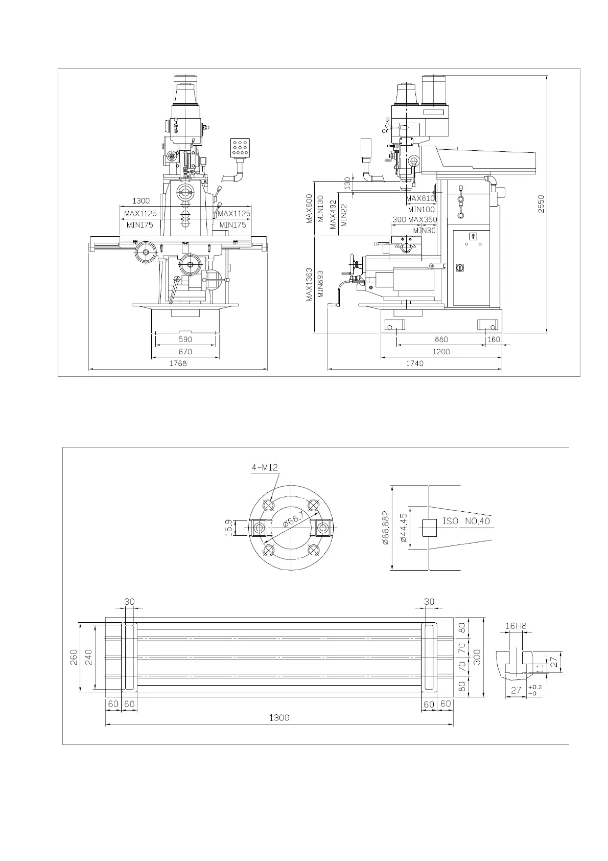 1-4-1 Table and spindle nose dimensions