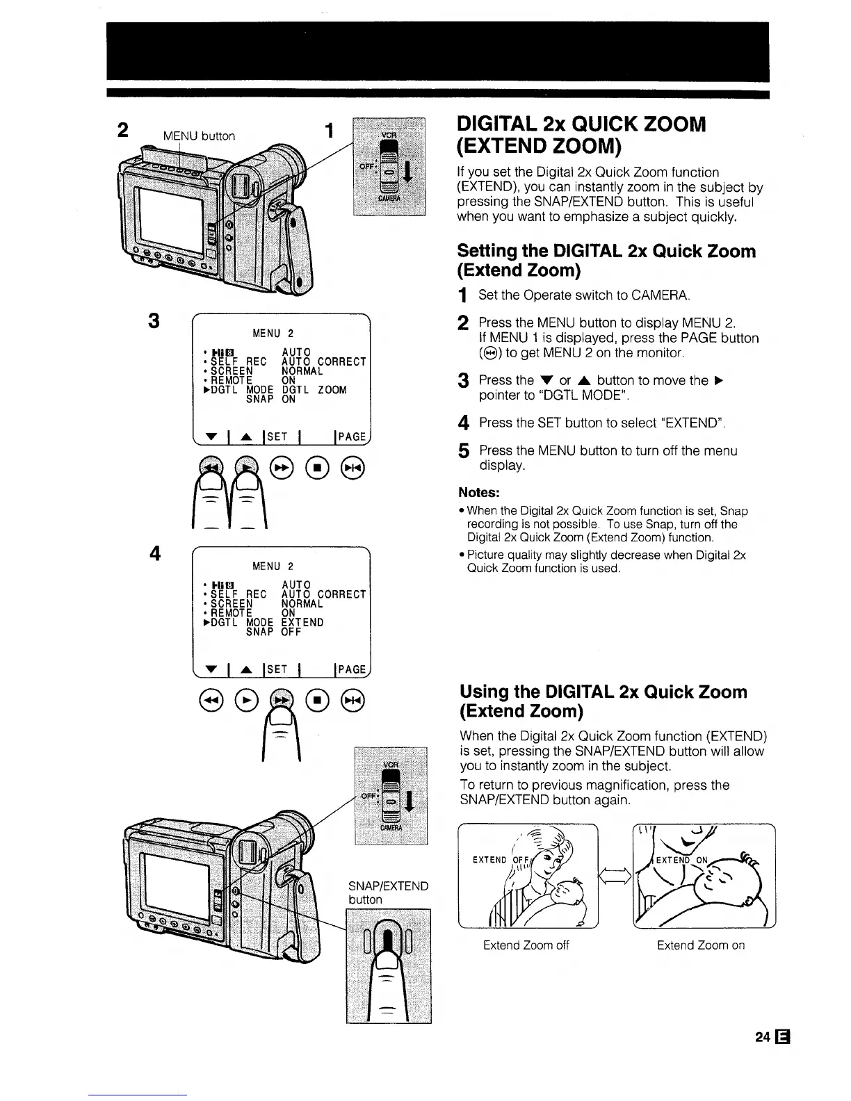 Sharp ViewaCam VL-H29E - Digital 2 X Quick Zoom; Setting the Digital 2 X Quick Zoom; Extend Zoom