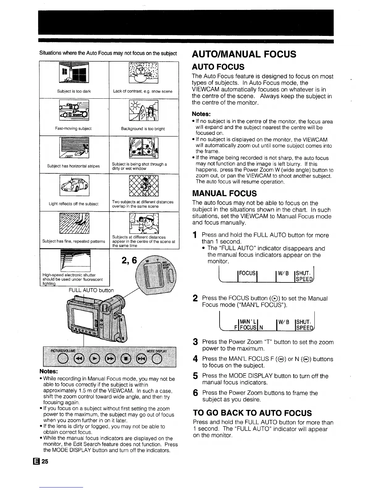 Sharp ViewaCam VL-H29E - Auto Focus; Manual Focus; To Go Back to Auto Focus