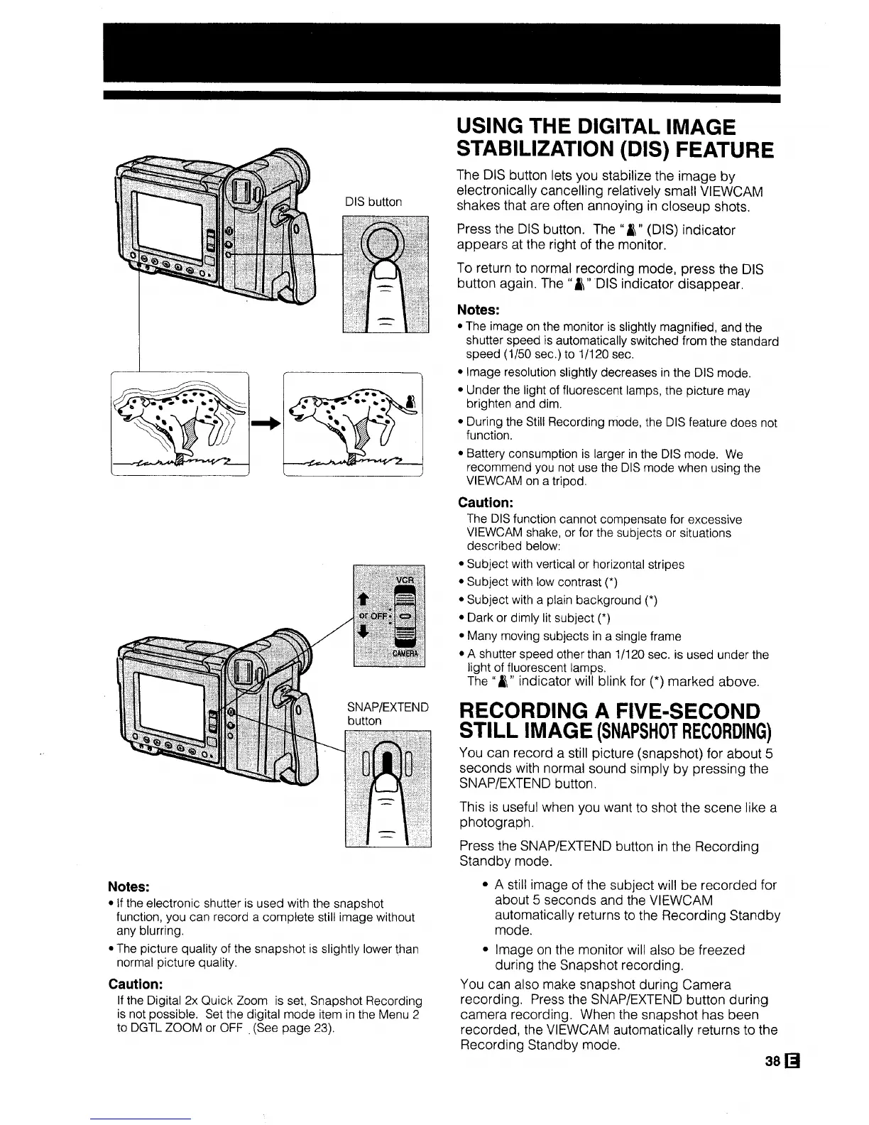 Sharp ViewaCam VL-H29E - Using the Digital Image Stabilization Feature; Recording a Five-Second Still Image; Snapshot Recording