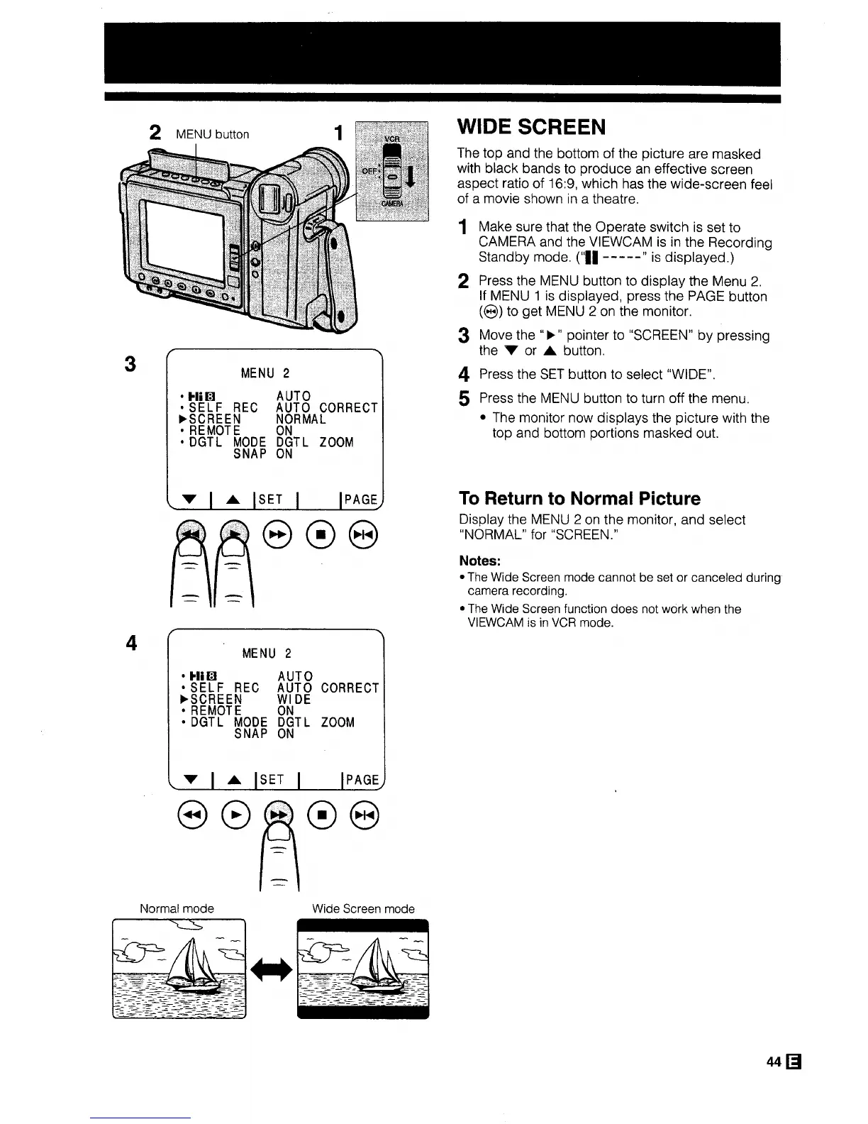 Sharp ViewaCam VL-H29E - Wide Screen; To Return to Normal Picture