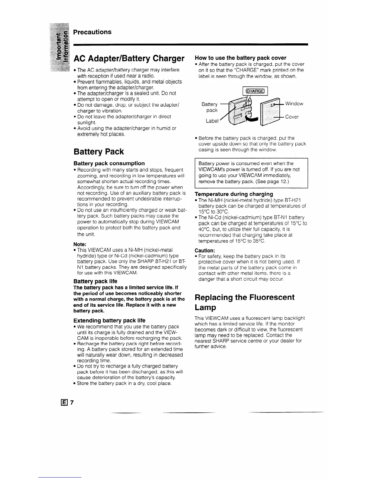 l This VIEWCAM uses a Ni-MH (nickel-metal