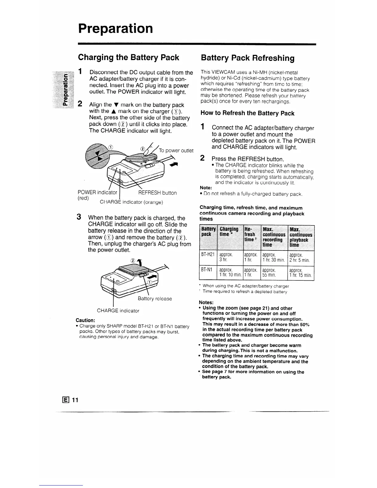 l Charge only SHARP model BT-H21 or BT-N1 battery