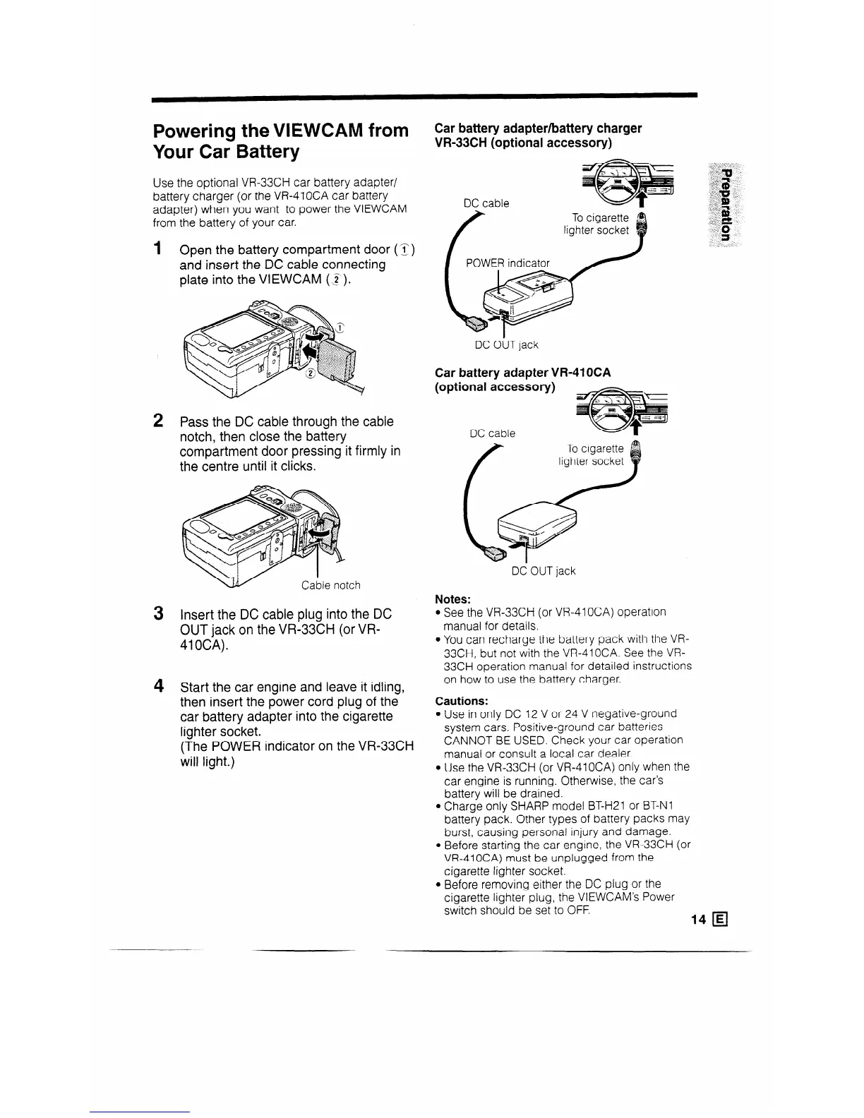 Use the optional VR33CH car battery adapter/