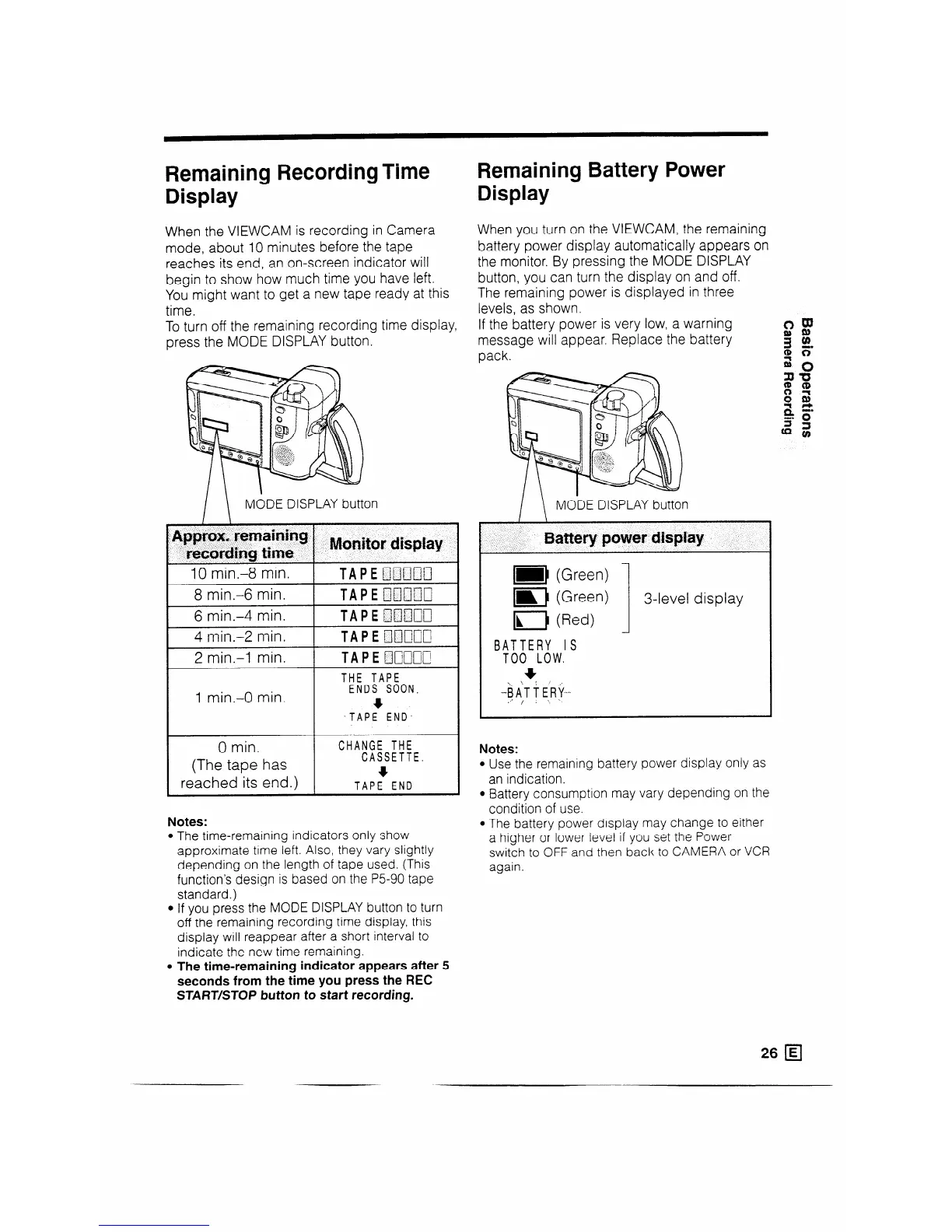 When the VIEWCAM is recording in Camera