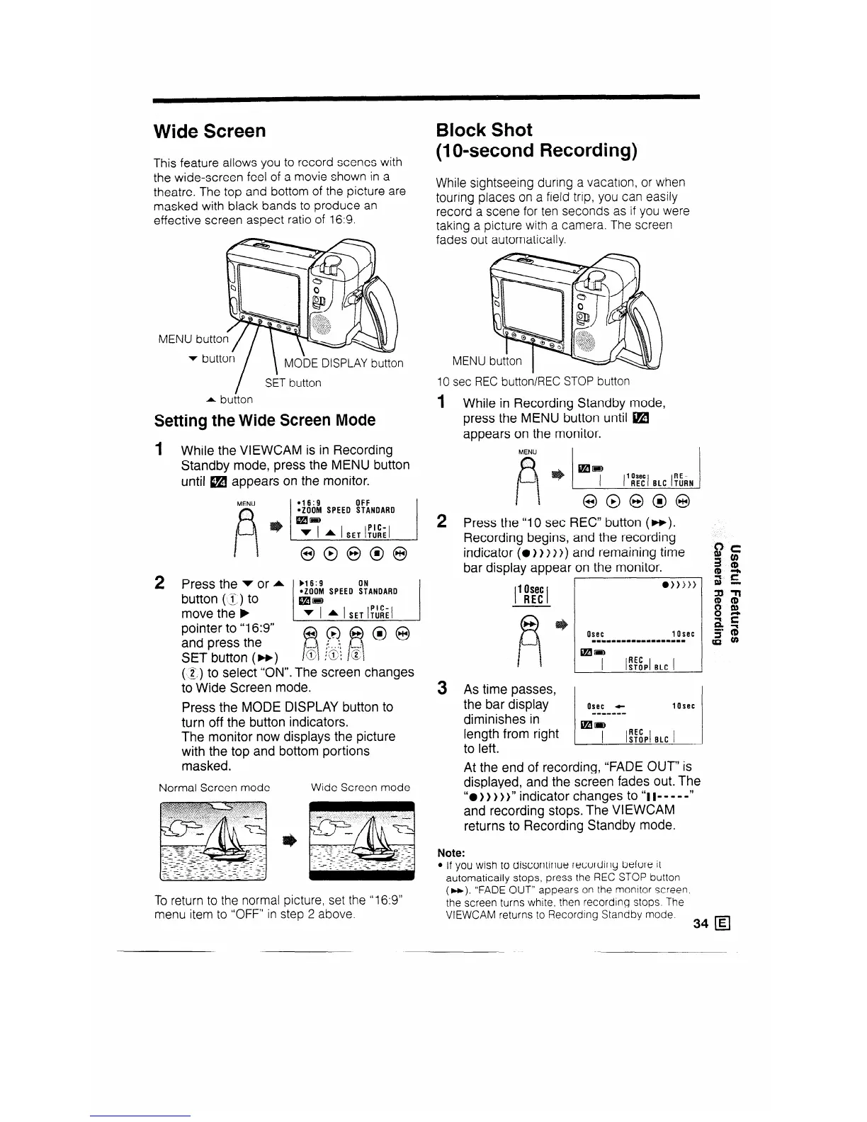 and recording stops. The VIEWCAM