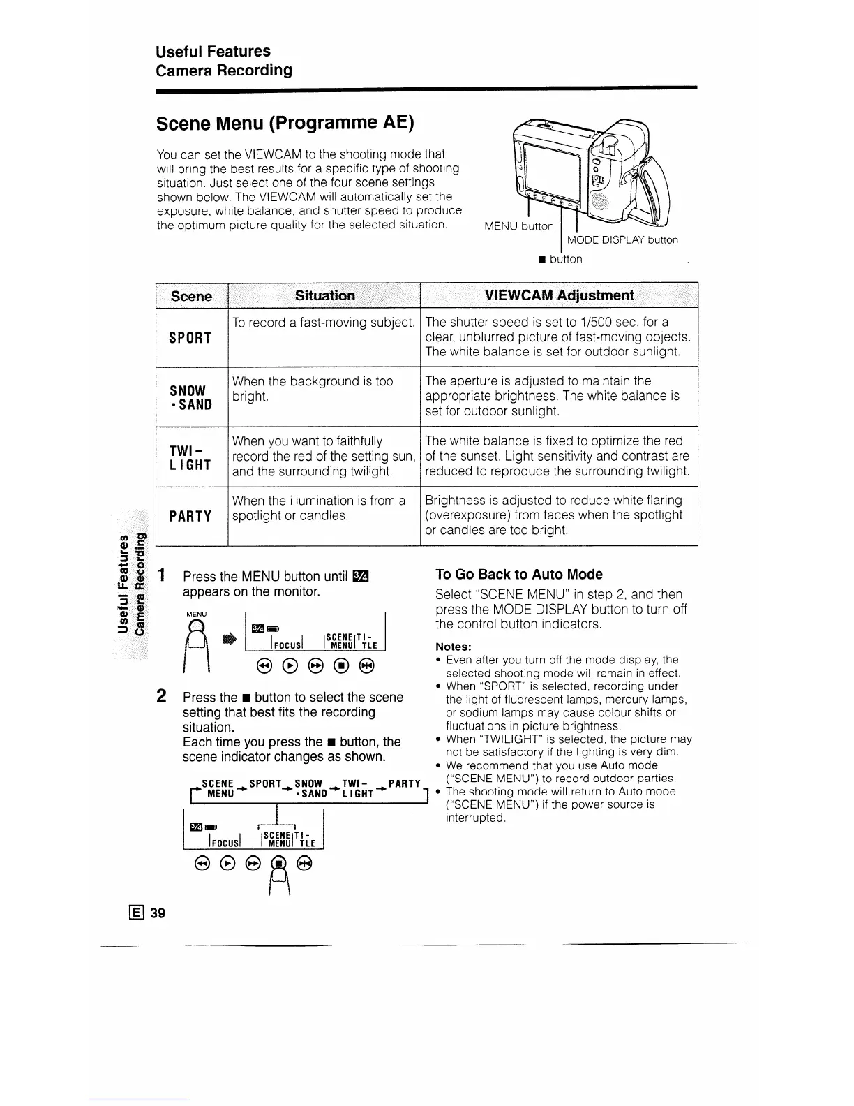(“SCENE MENU”) to record outdoor parties.