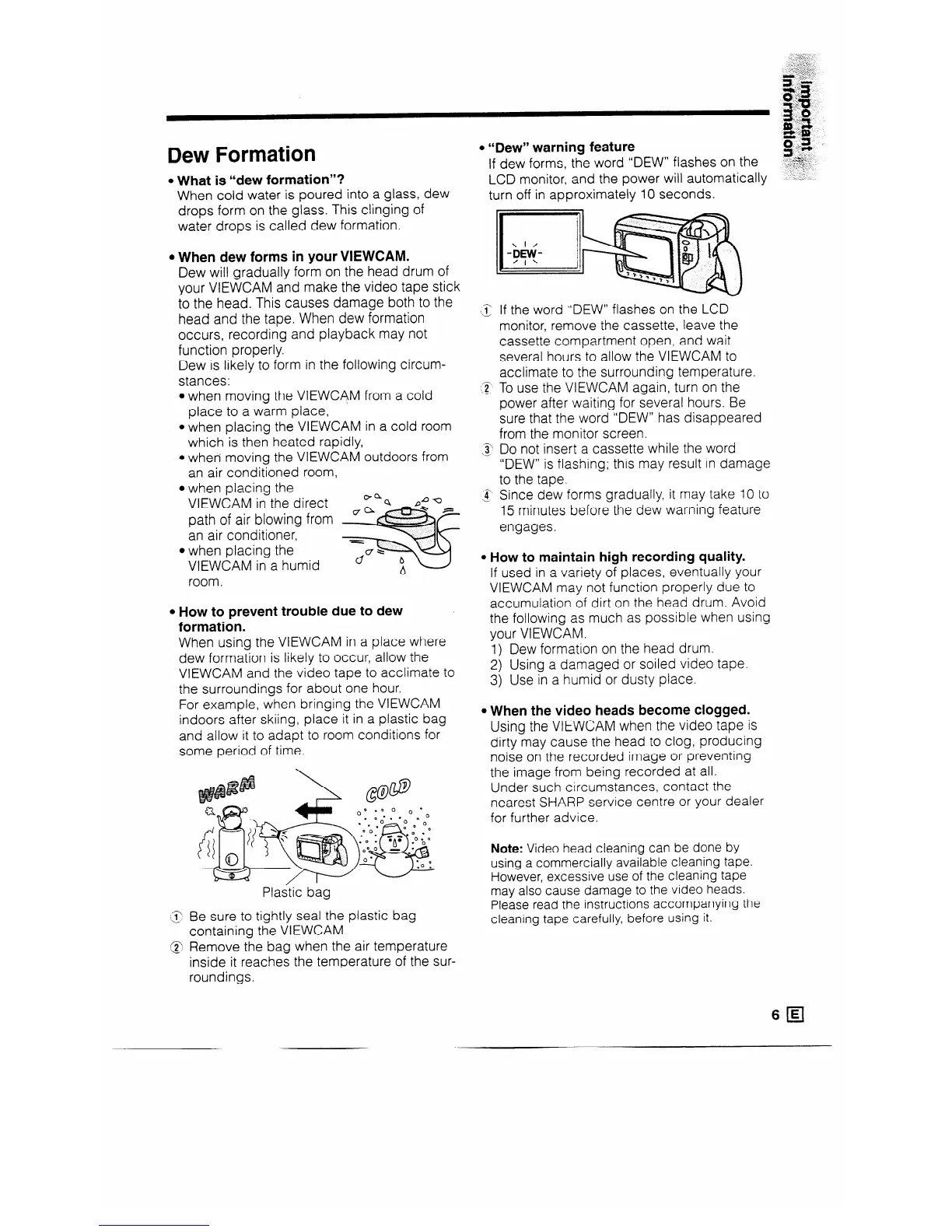 l When dew forms in your VIEWCAM.