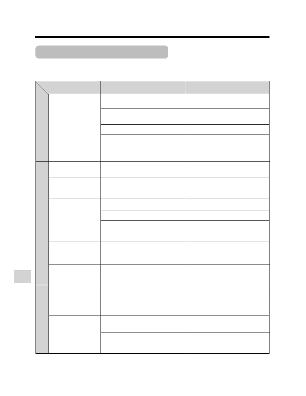 Before calling for service, please check the following troubleshooting table.