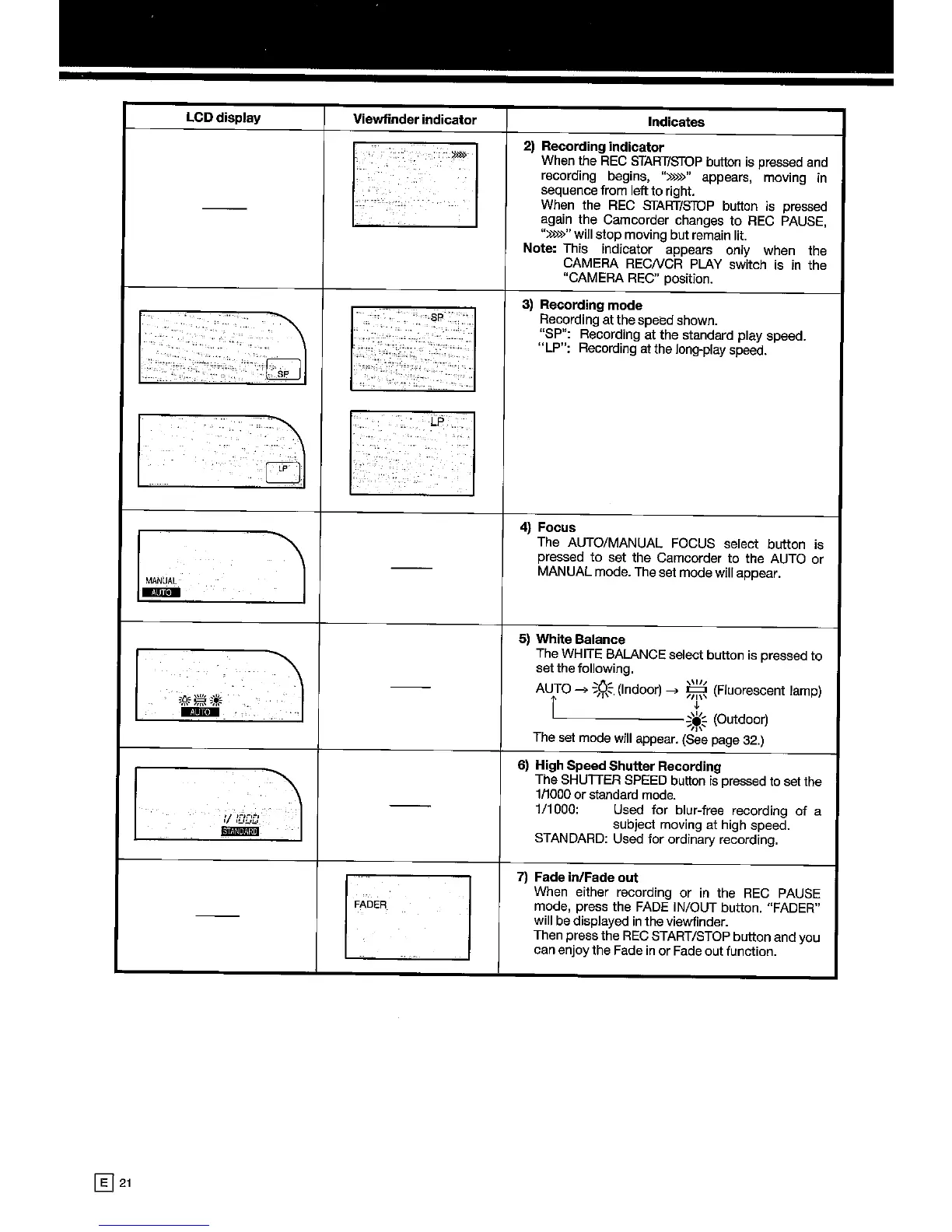 Sharp VL-C650S - Recording Indicator; Recording Mode; Focus; White Balance