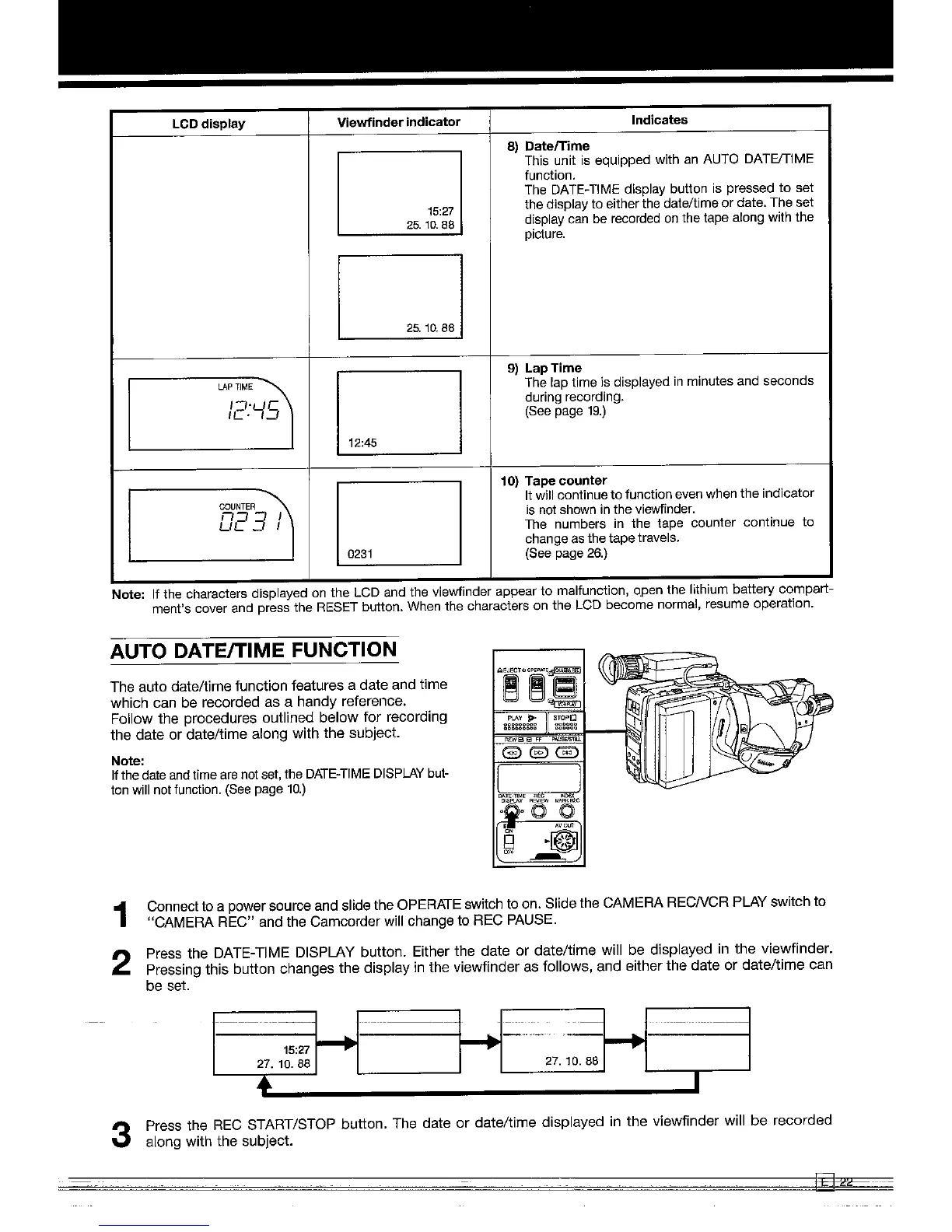 Sharp VL-C650S - Auto Date;Time Function; Date;Time; Lap Time; Tape Counter