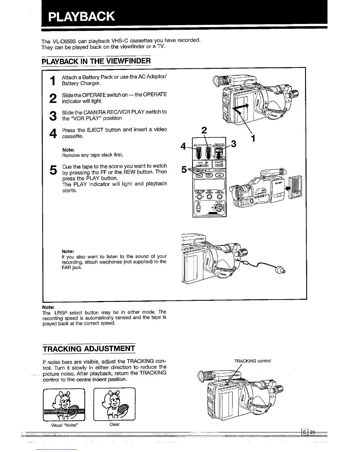 Sharp VL-C650S - Playback; Playback in the Viewfinder; Tracking Adjustment
