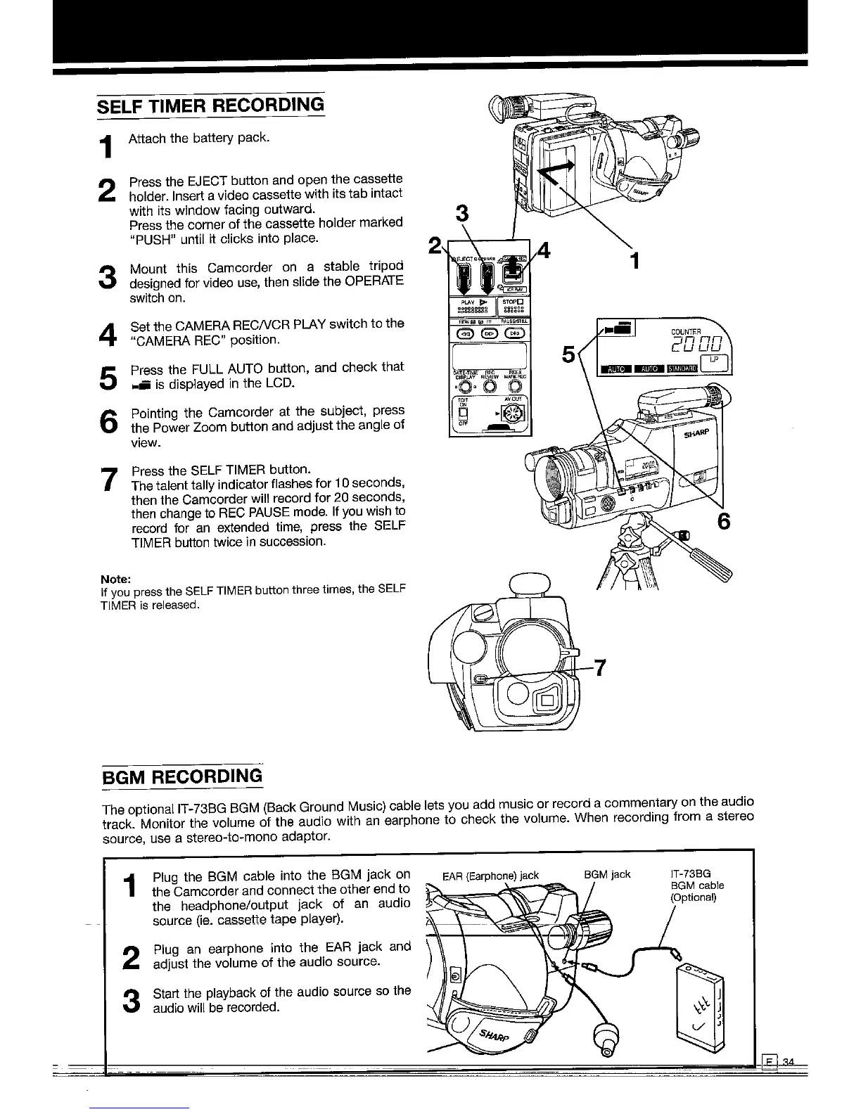 Sharp VL-C650S - Self Timer Recording; BGM Recording