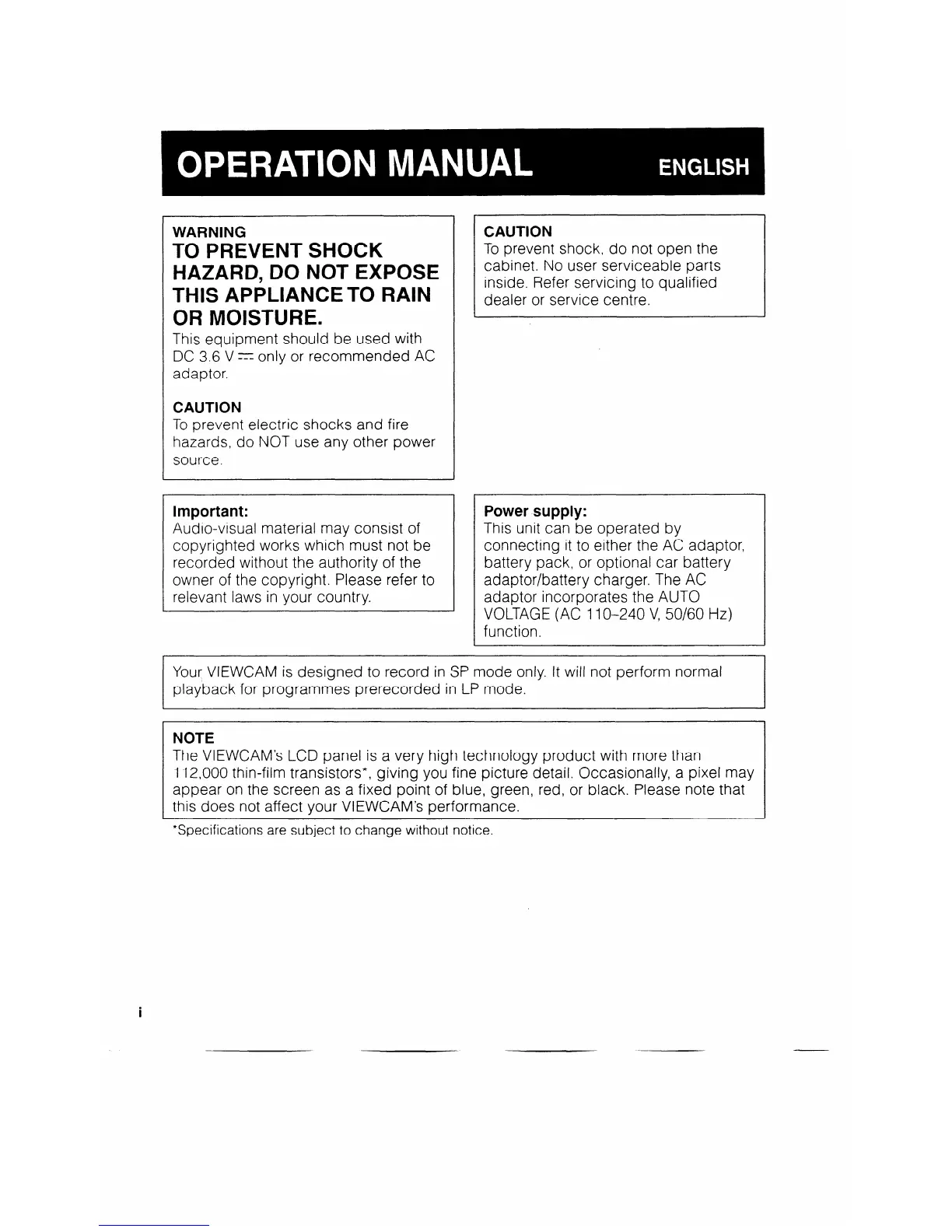 VOLTAGE (AC 1 IO-240 V, 50/60 Hz)