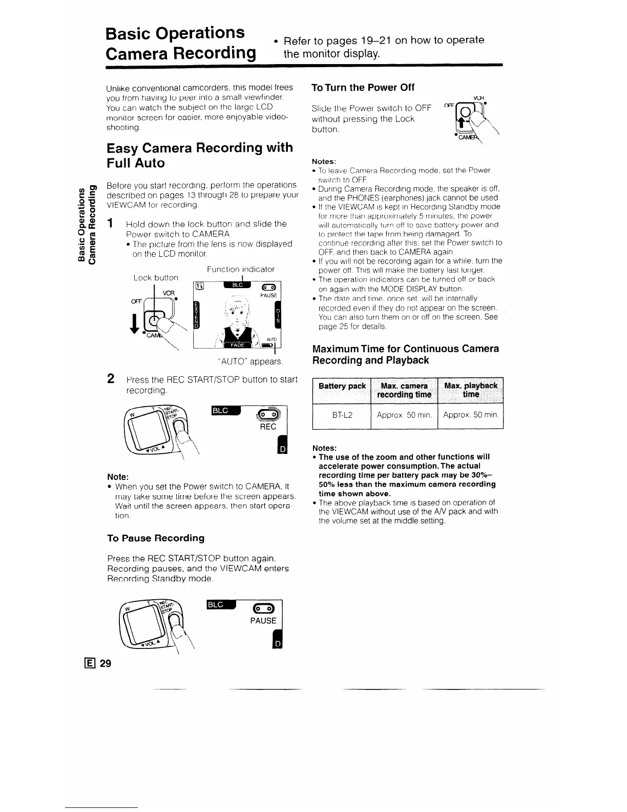 l If the VIEWCAM IS kept in Recording Standby mode