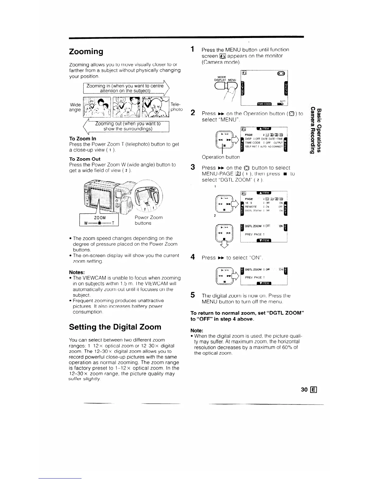 ranges: l-l 2 x optical zoom or 12-30 x digital