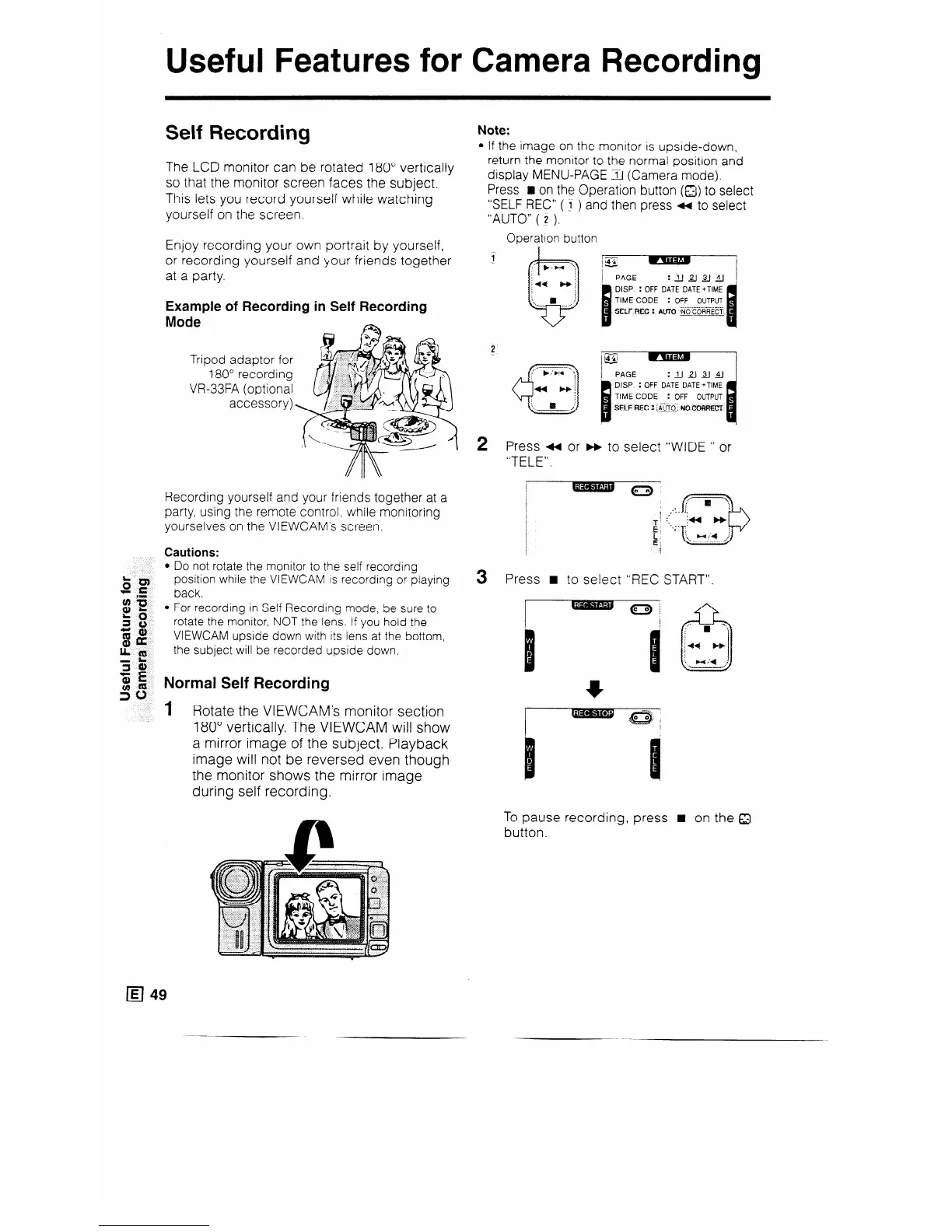 position while the VIEWCAM IS recording or playing