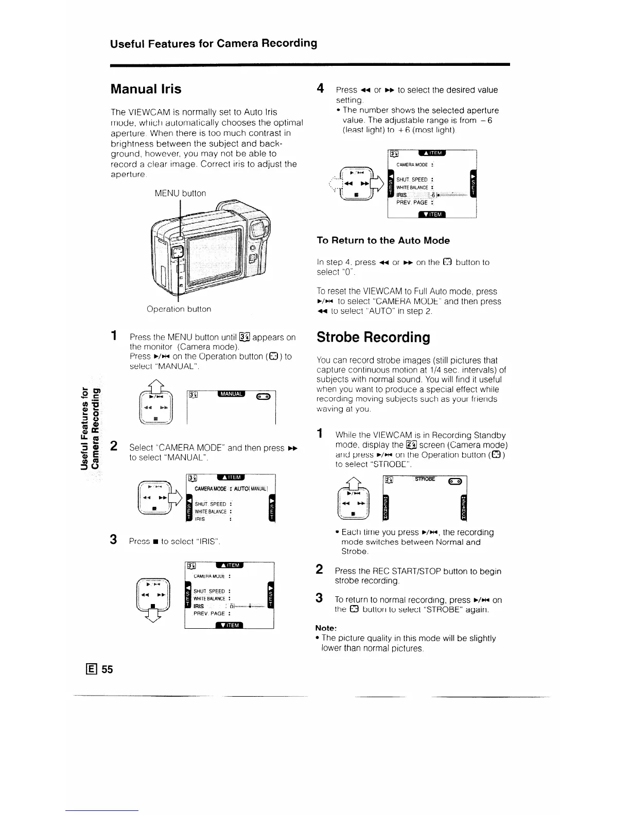 The VIEWCAM is normally set to Auto Iris