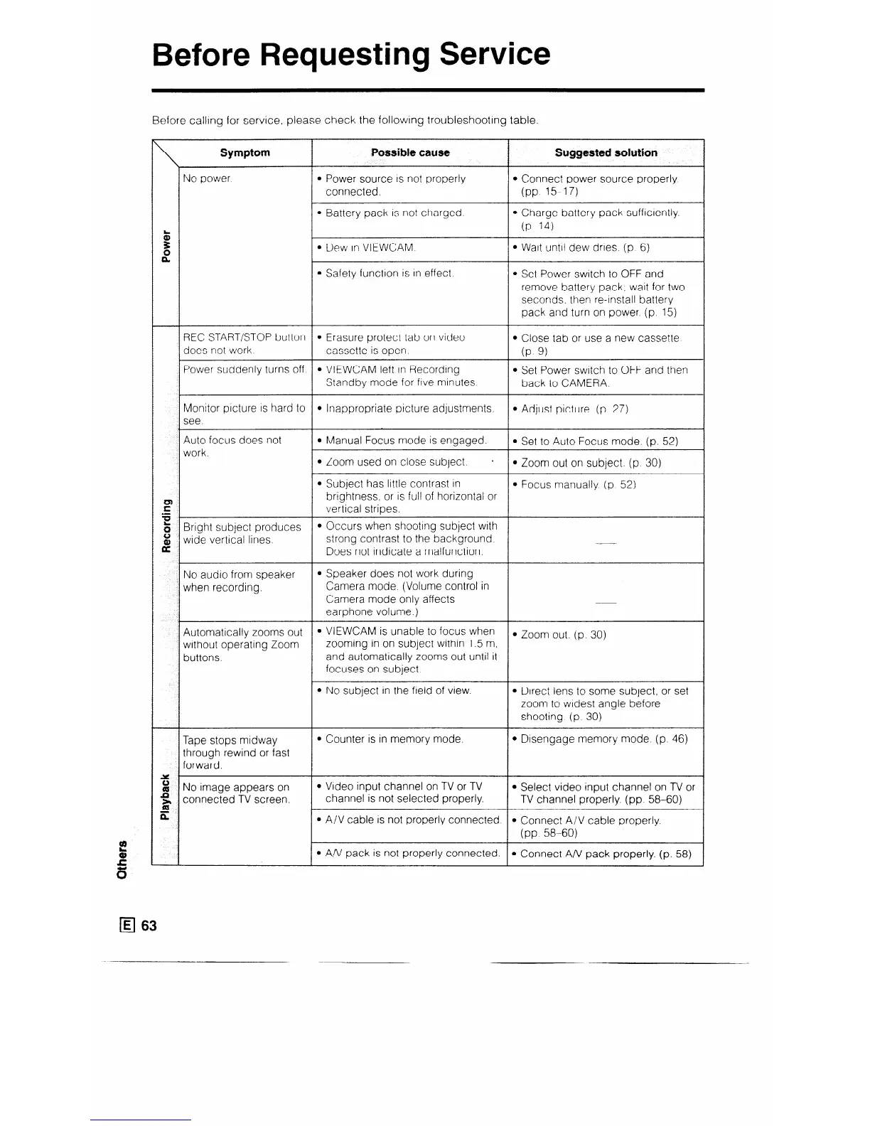 Before callmg for service, please check the following troubleshooting table.