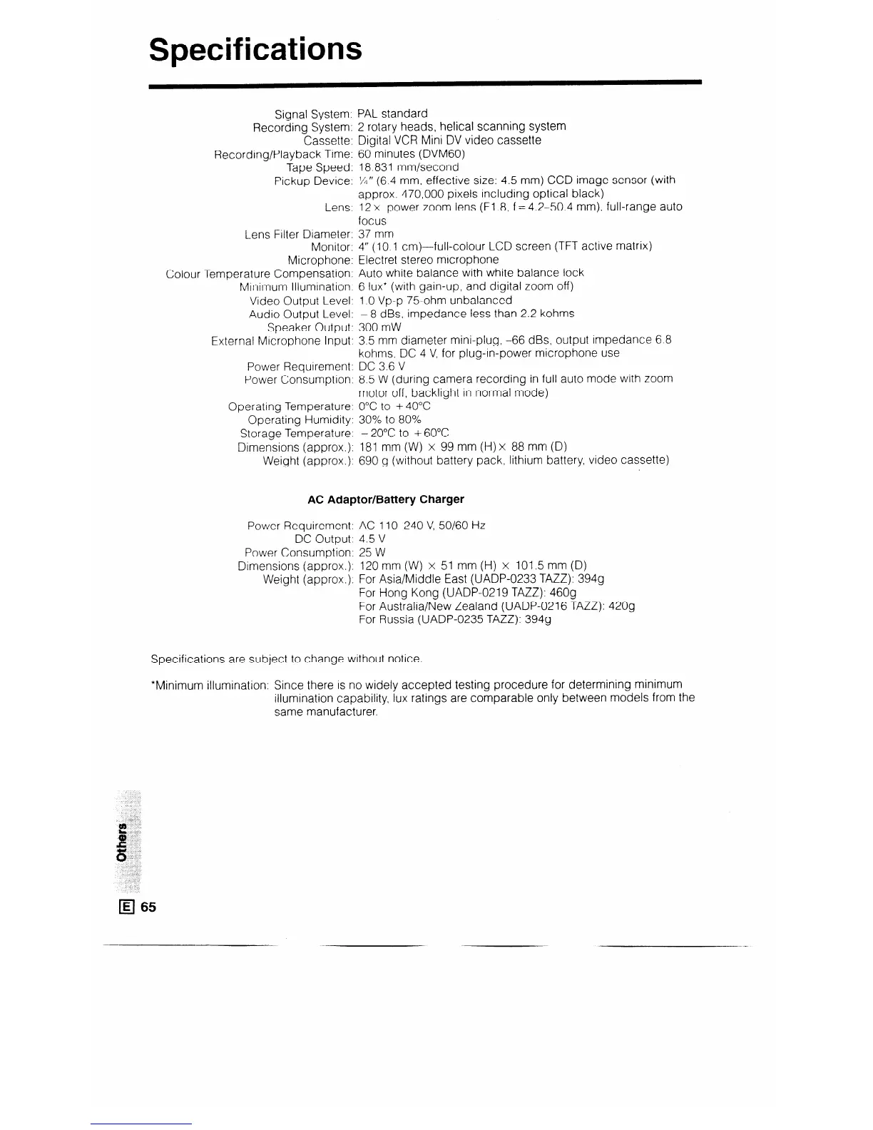 *Minimum illumination: Since there is no widely accepted testing procedure for determining minimum