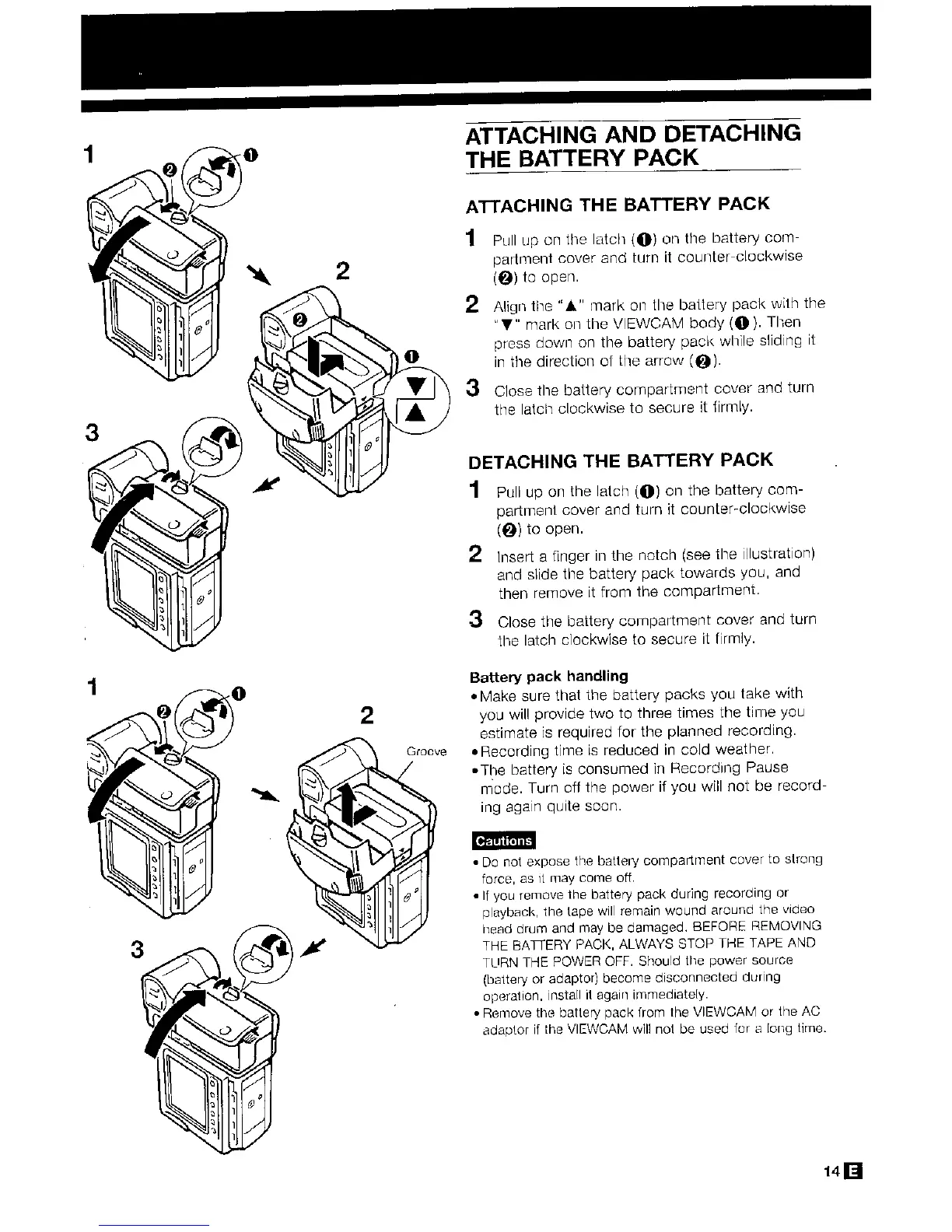 Sharp VL-H400S - Attaching and Detaching the Battery Pack; Battery Pack Handling