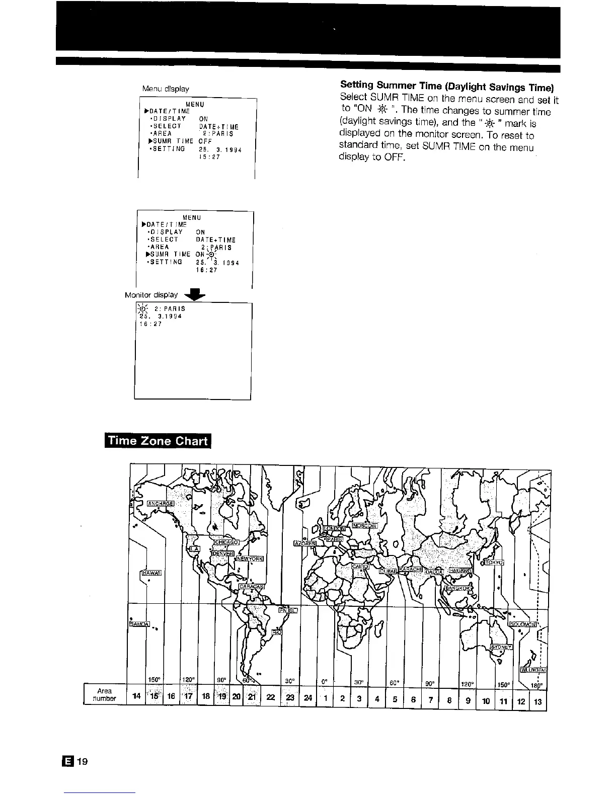 Sharp VL-H400S - Time Zone Chart; Setting Summer Time