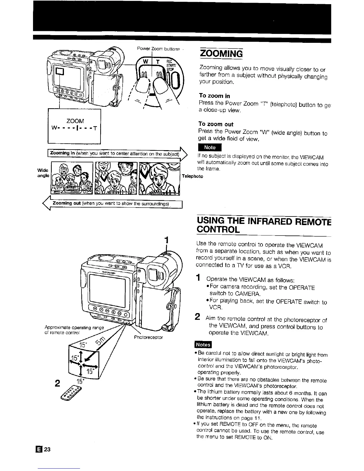 Sharp VL-H400S - Zooming; Using the Infrared Remote Control; To Zoom in; To Zoom out