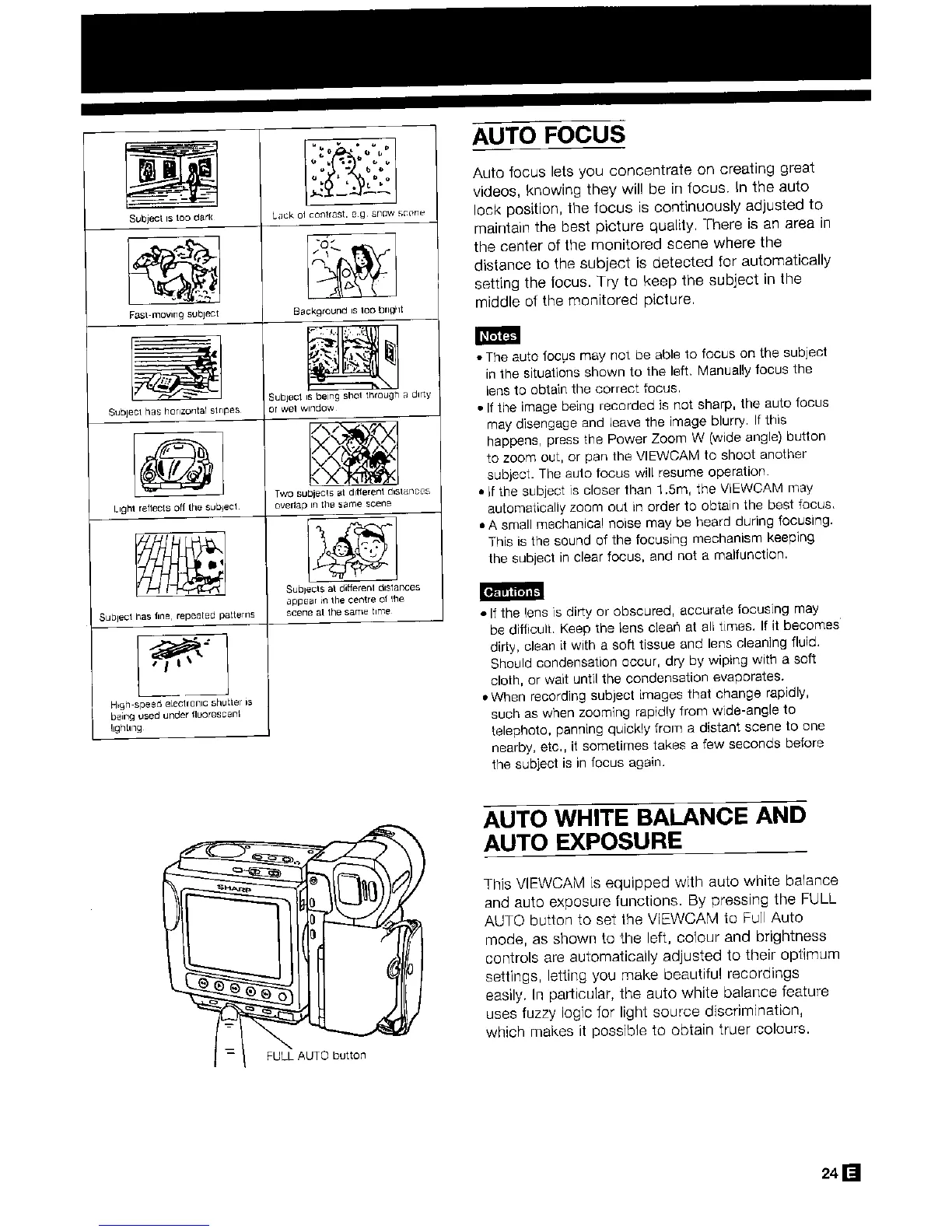 Sharp VL-H400S - Auto Focus; Auto White Balance and Auto Exposure
