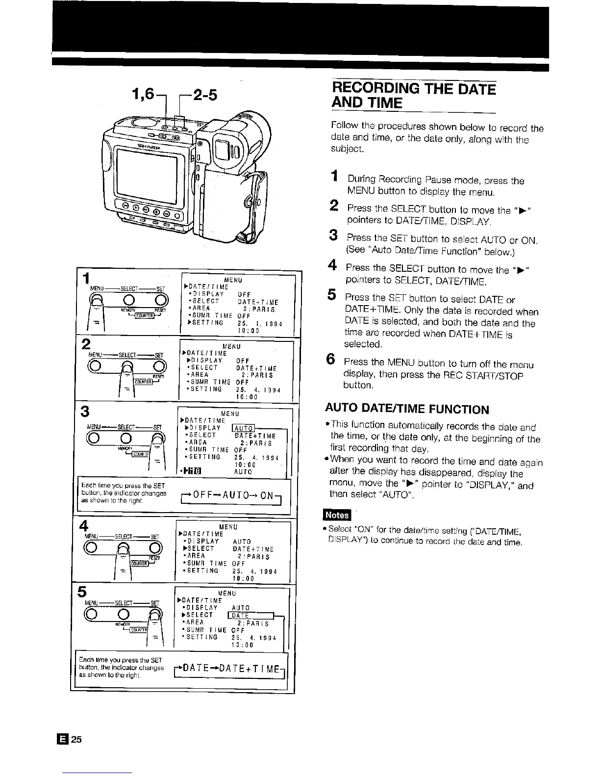 Sharp VL-H400S - Recording the Date and Time; Auto Date;Time Function