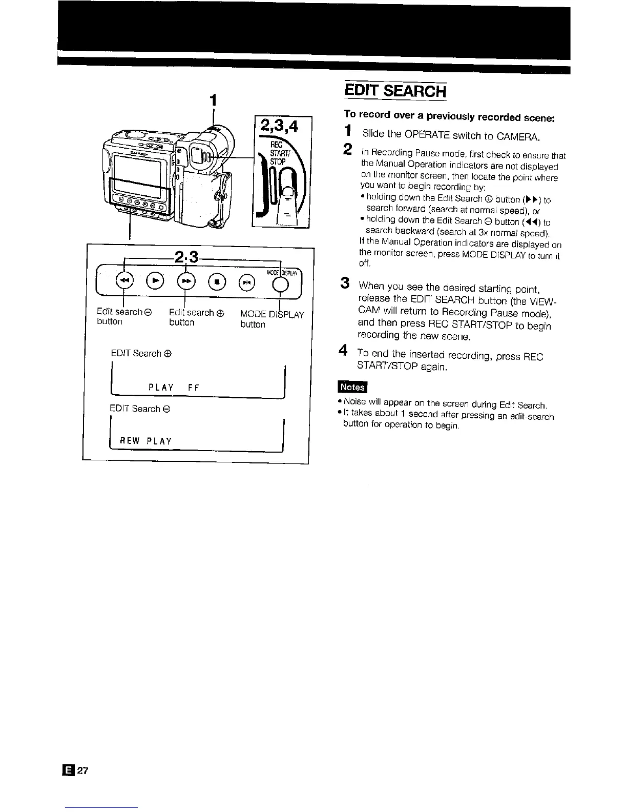 Sharp VL-H400S - Edit Search; To Record over a Previously Recorded Scene