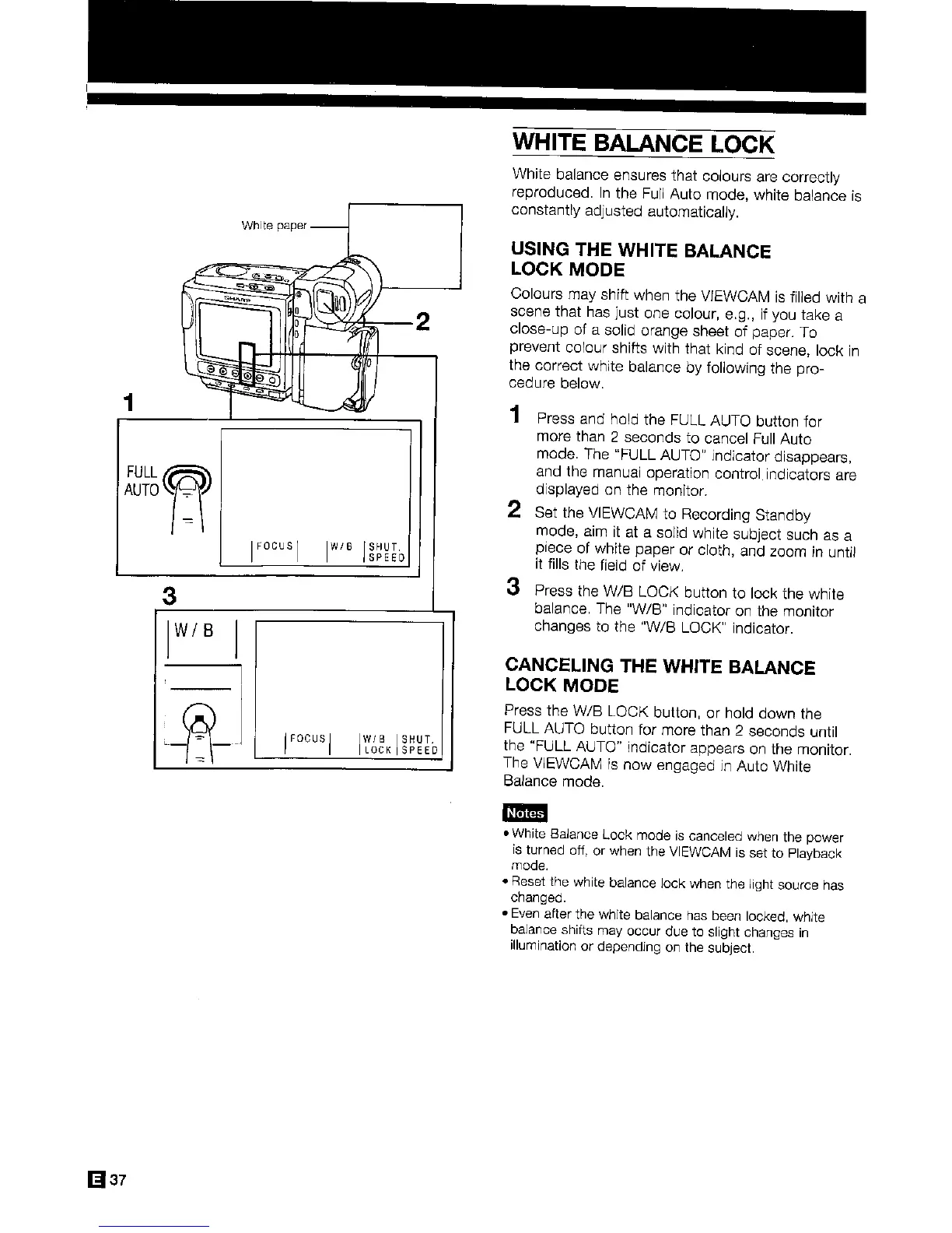 Sharp VL-H400S - White Balance Lock; Using the White Balance Lock Mode; Canceling the White Balance Lock Mode