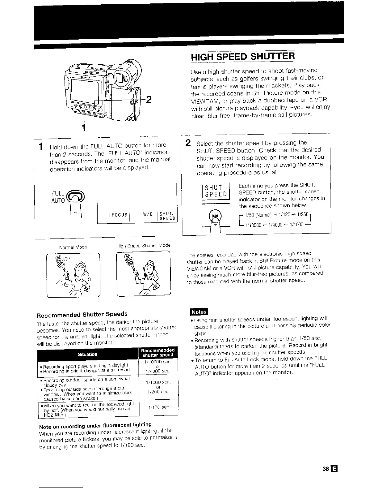 Sharp VL-H400S - High Speed Shutter; Recommended Shutter Speeds