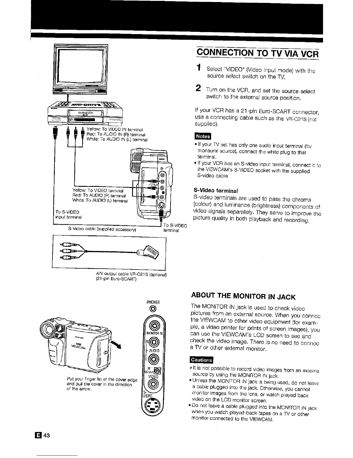Sharp VL-H400S - Connection to TV Via VCR; S-Video Terminal; About the Monitor in Jack