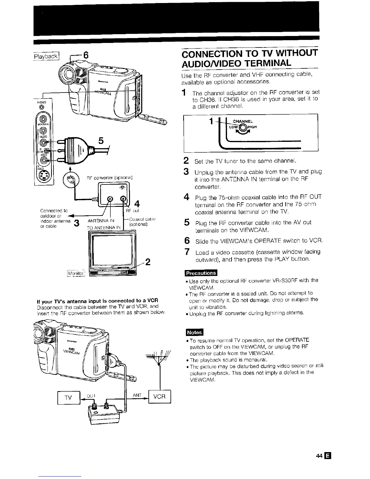 Sharp VL-H400S - Connection to TV Without Audio;Video Terminal