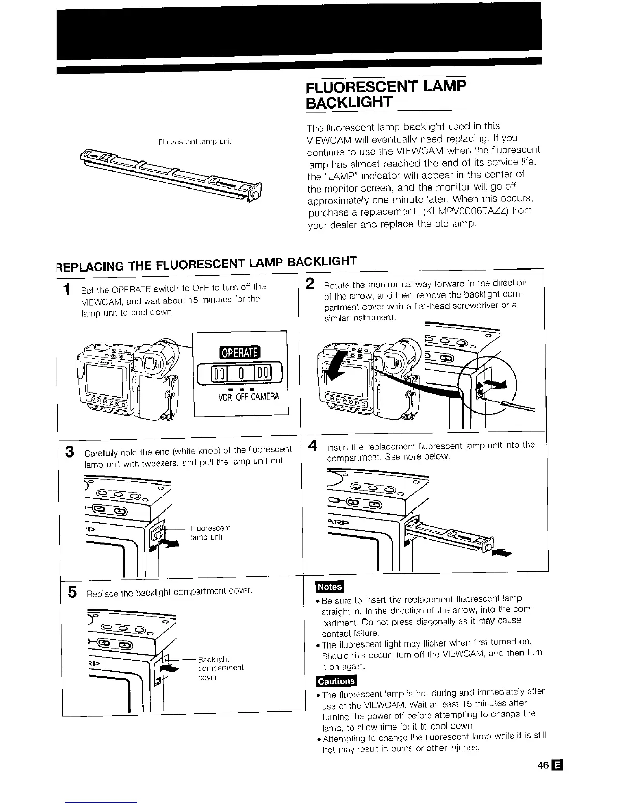Sharp VL-H400S - Flueorescent Lamp Backlight; Replacing the Fluorescent Lamp Backlight