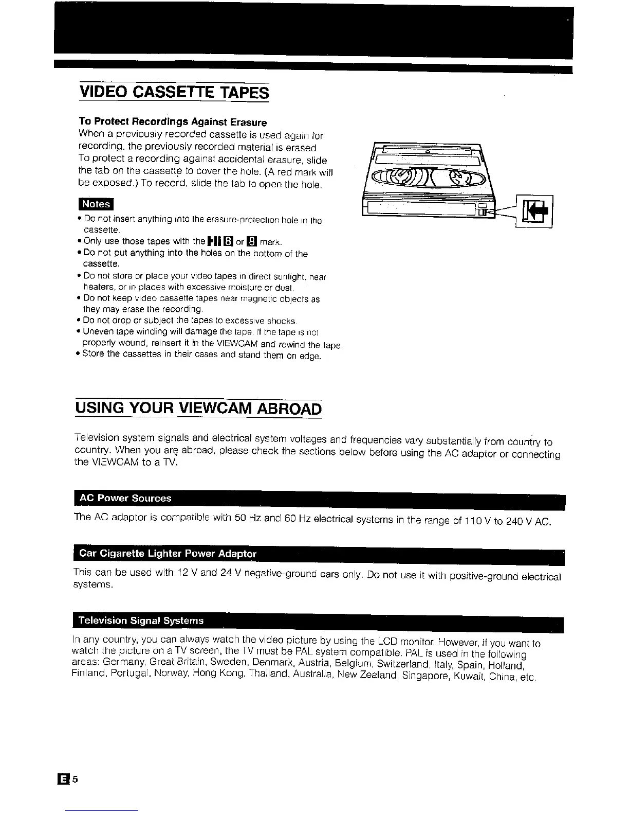 Sharp VL-H400S - Video Cassette Tapes; To Protect Recordings against Erasure; Using Your Webcam Abroad; AC Power Sources