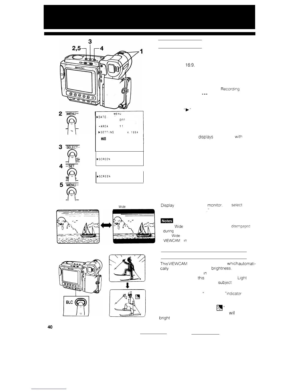 Press the SET button to select “WIDE.”