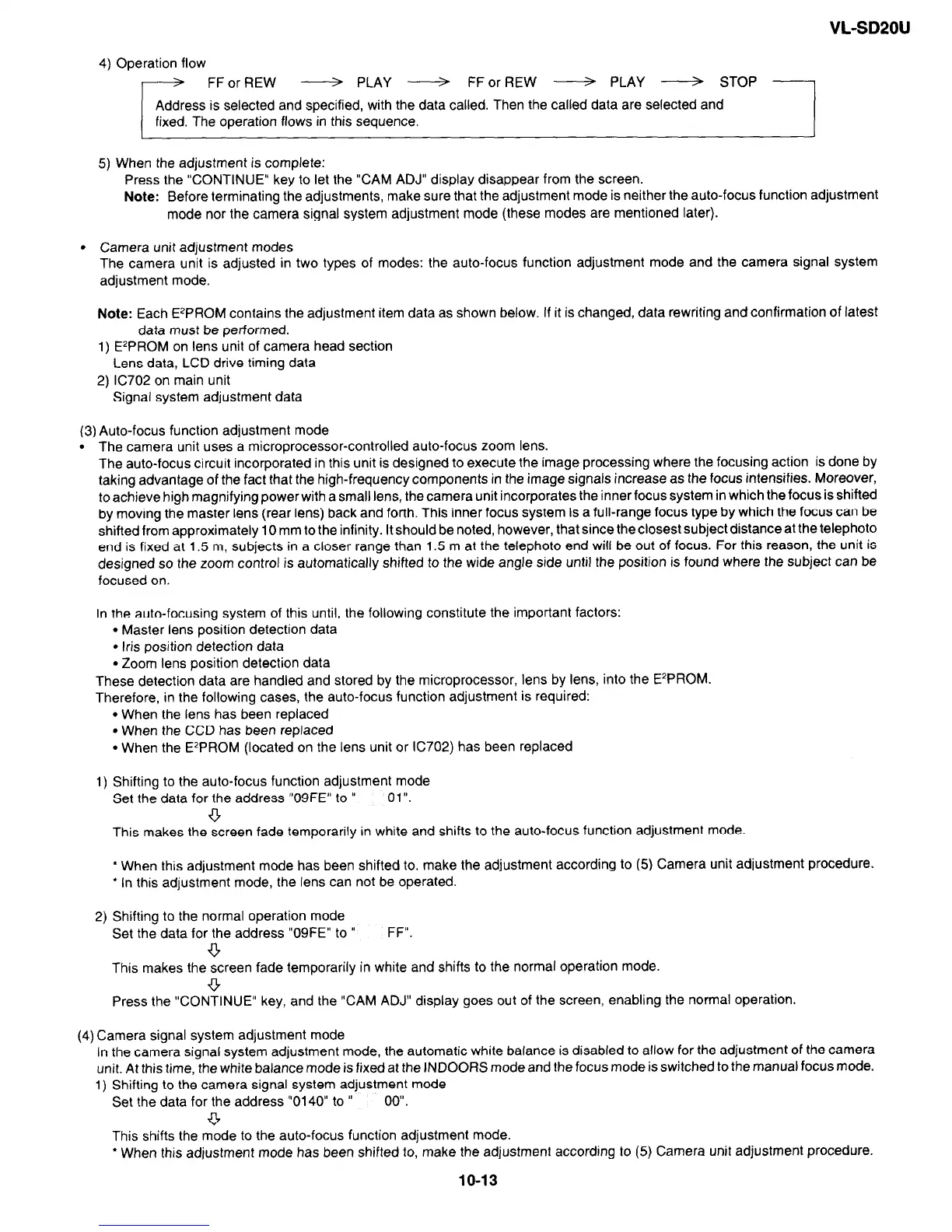 Note: Before terminating the adjustments, make sure that the adjustment mode is neither the auto-focus function adjustment