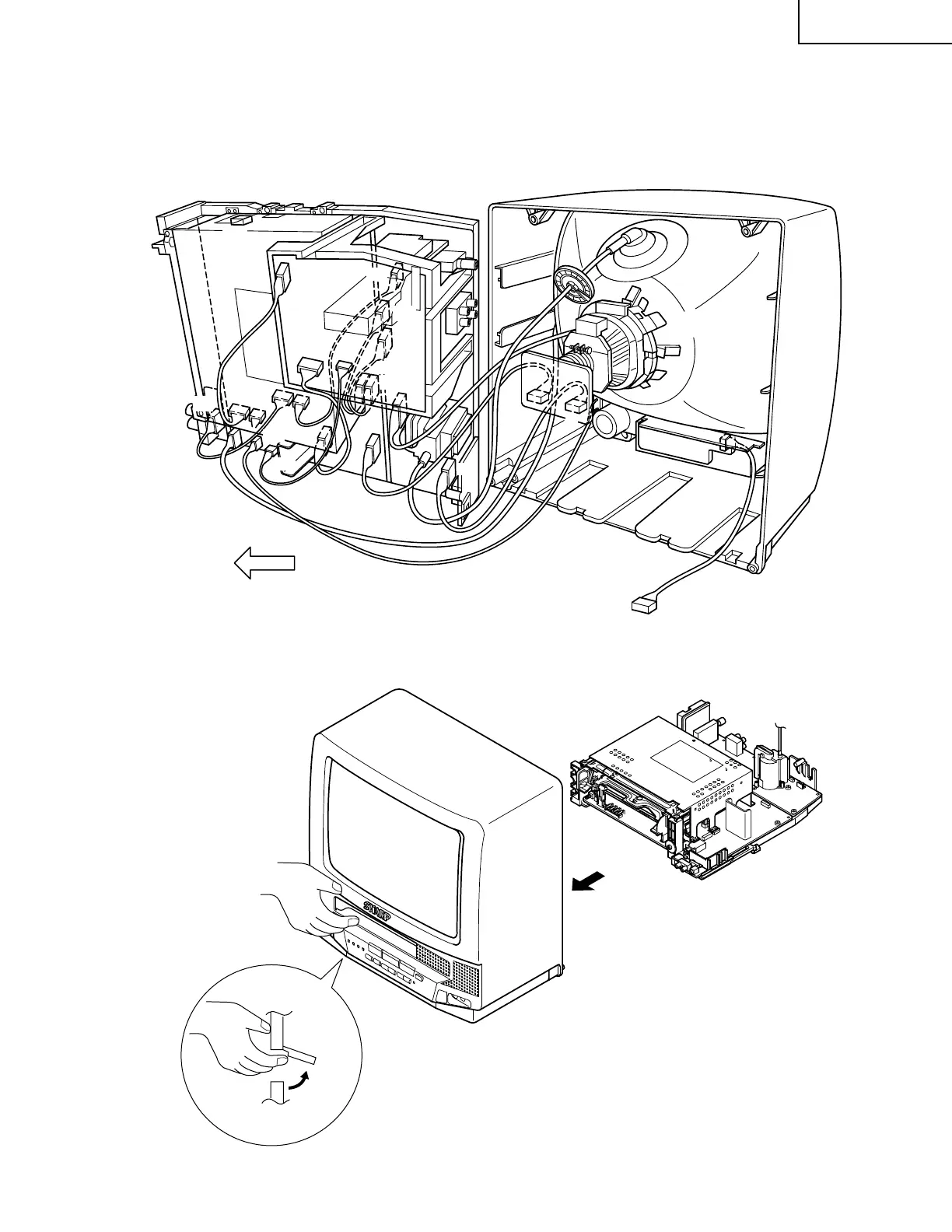 For servicing any of the components inside, disconnect the lead dressing holder. Position the main PWB unit upright