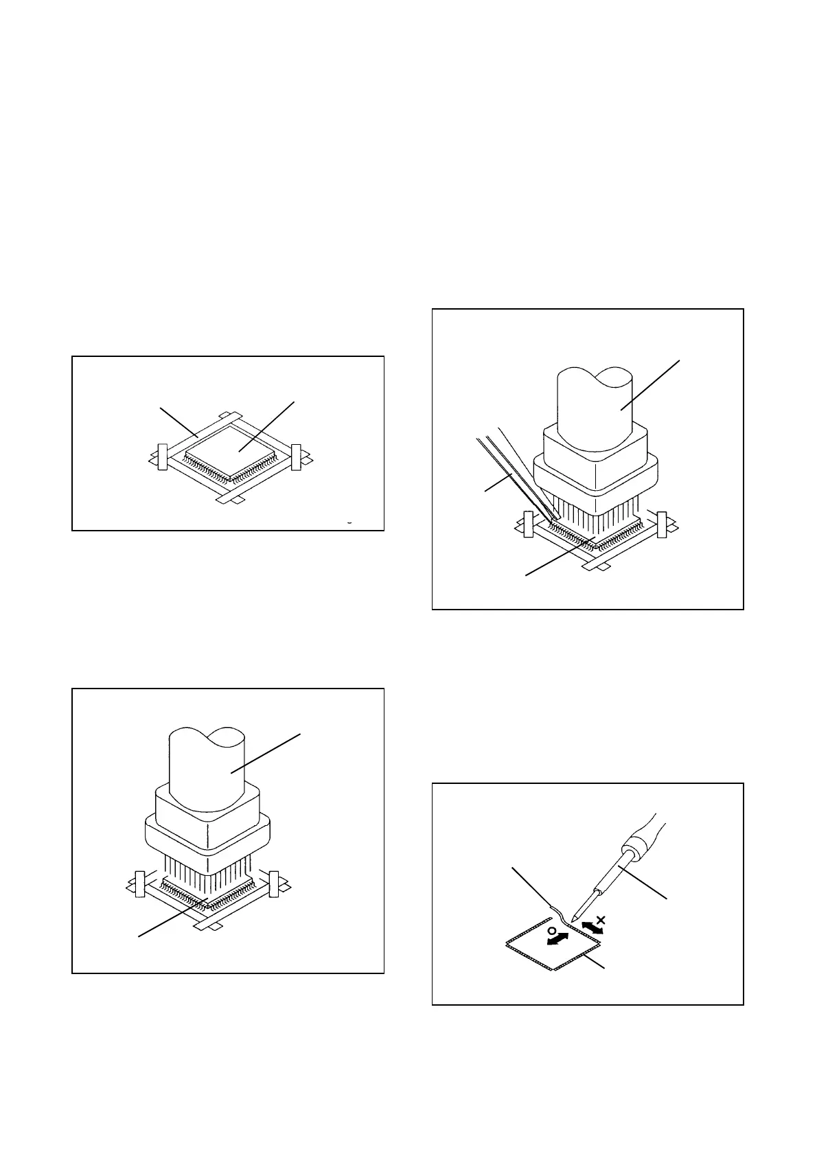 leads completely. 5. Absorb the solder left on the pattern using the Braided