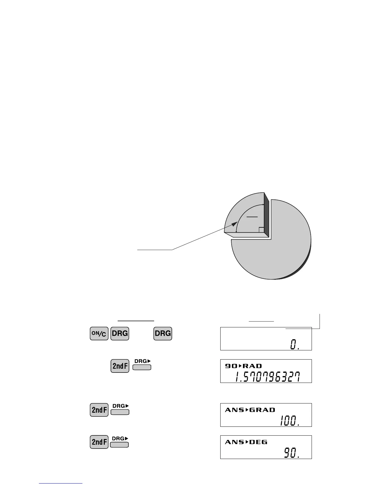 Angular values are converted from DEG to RAD to GRAD with each push of the DRG
