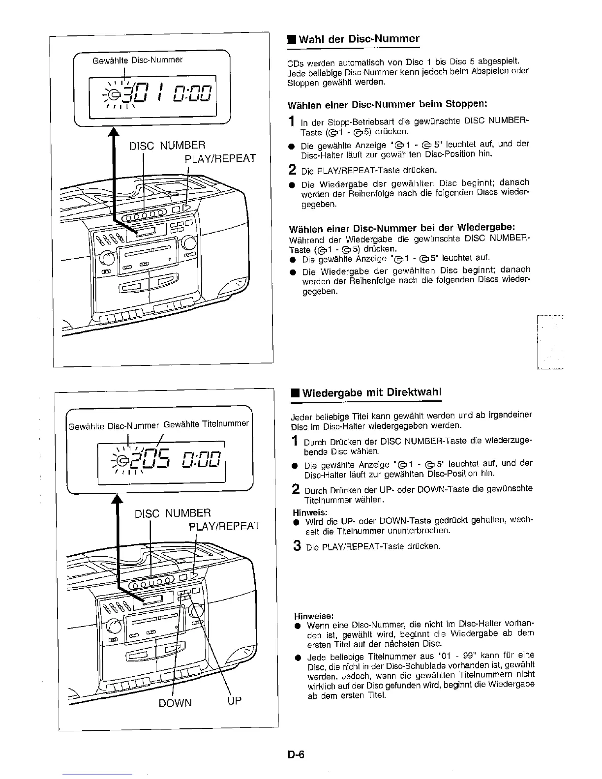 Sharp WQ-CH800H - CD Disc and Track Selection; Selecting a Disc Number; Direct-Selection Track Play