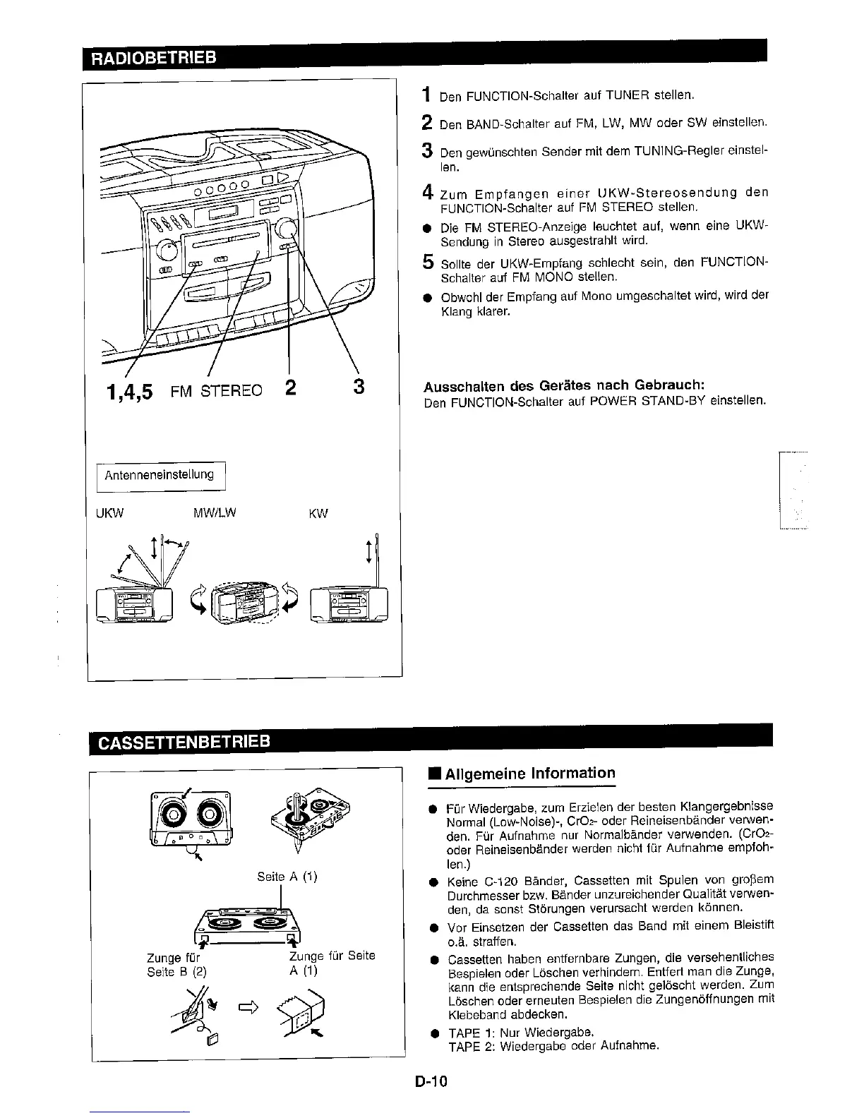 Sharp WQ-CH800H - Radio Operation; Tuning and Receiving Radio Stations; Aerial Adjustment for Reception; Cassette Operation General Information