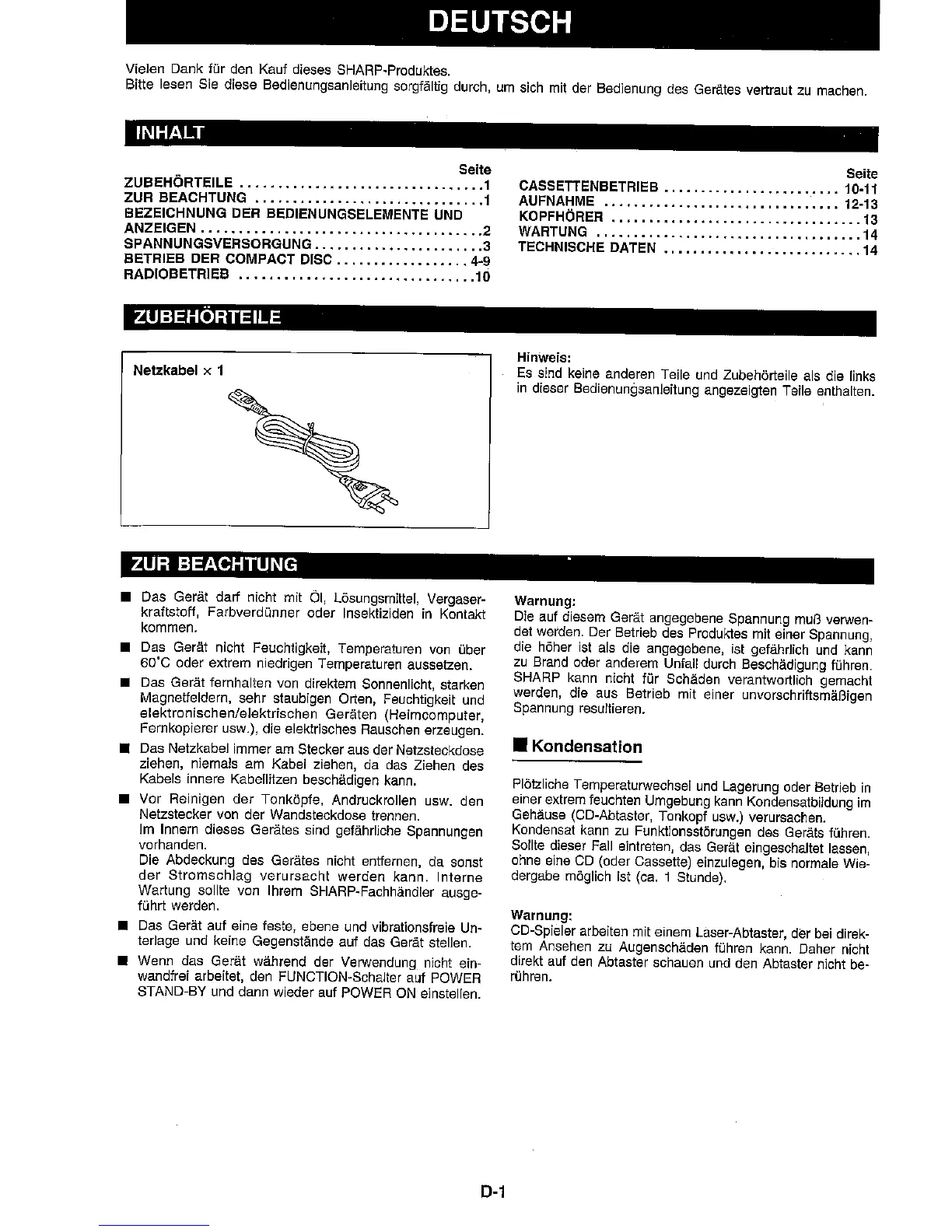 Sharp WQ-CH800H - Accessories and General Precautions; AC Power Lead; Cleaning and Environmental Care; Electrical Safety and Handling