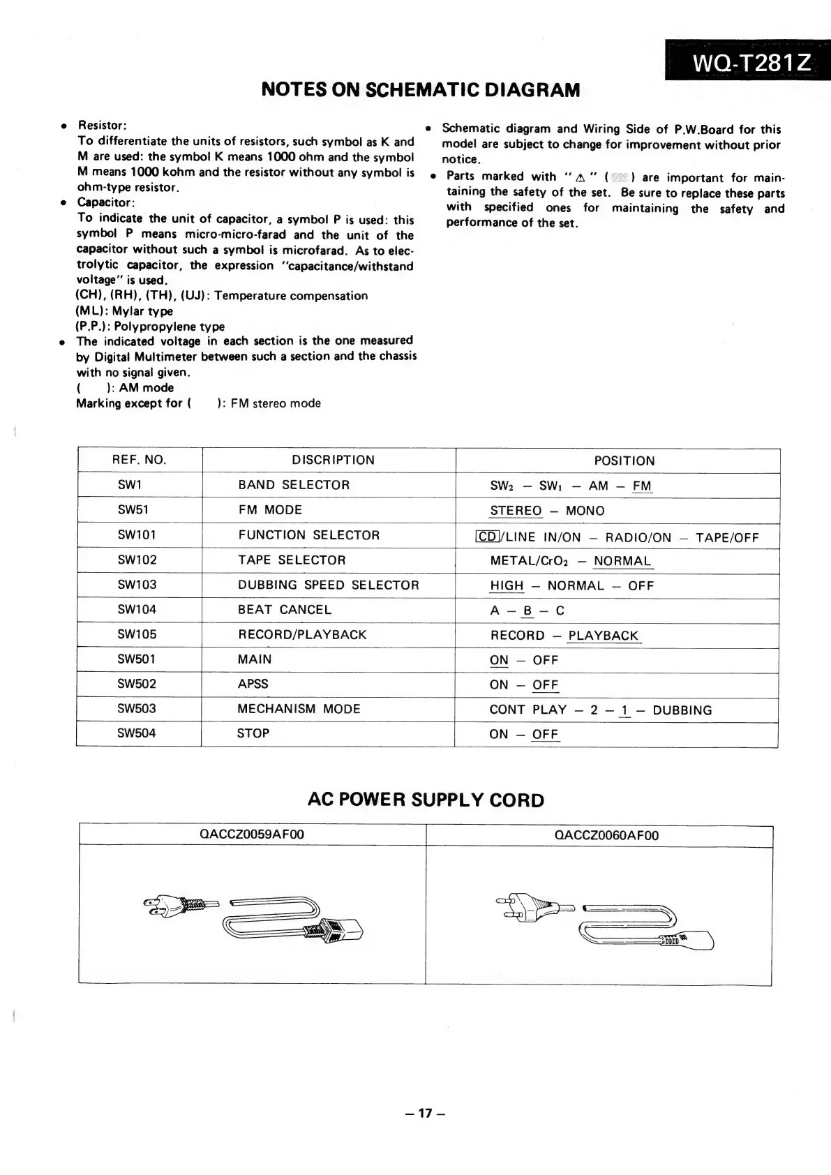 Sharp WQ-T281Z - Notes on Schematic Diagram