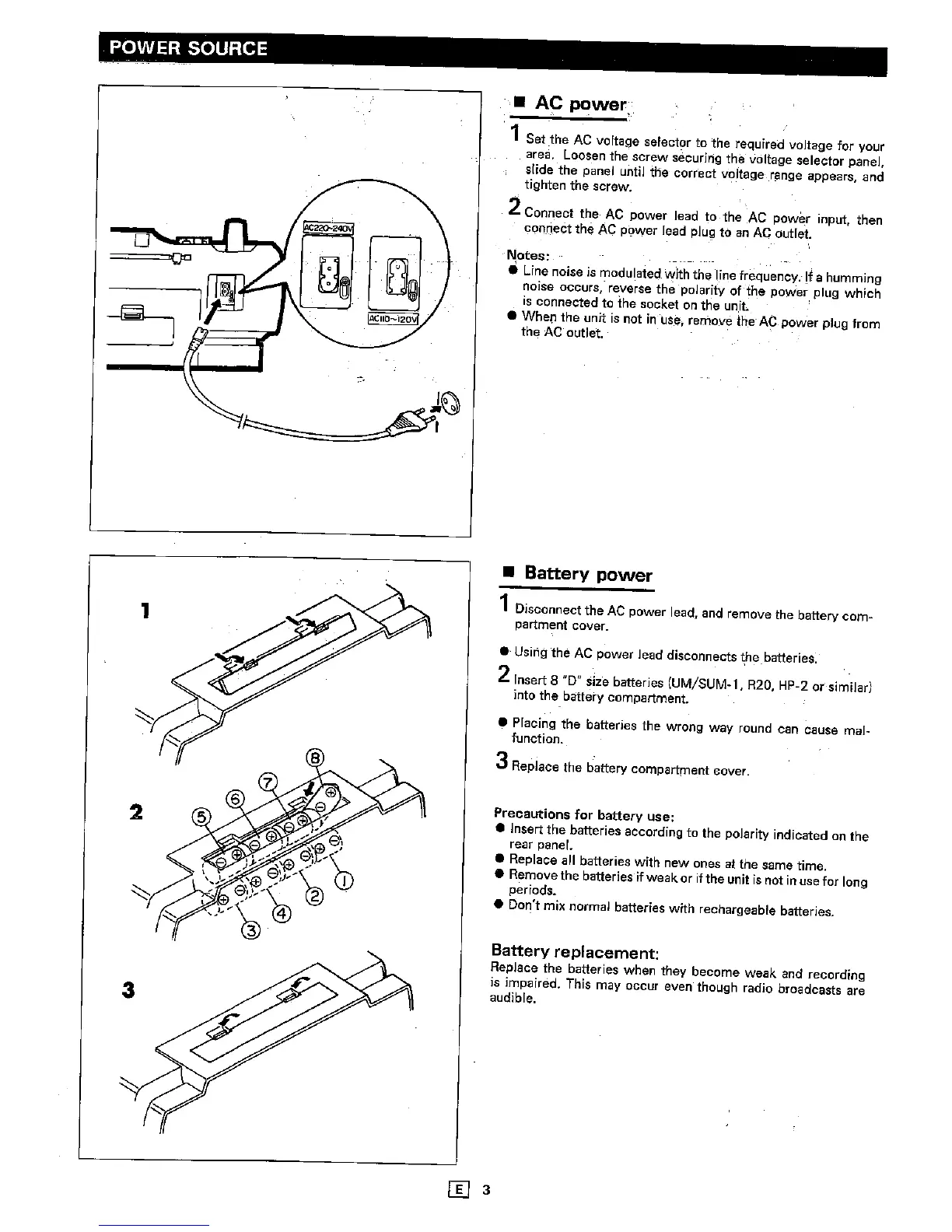 Sharp WQ-T360H - Power Source; AC Power; Battery Power; Battery Replacement