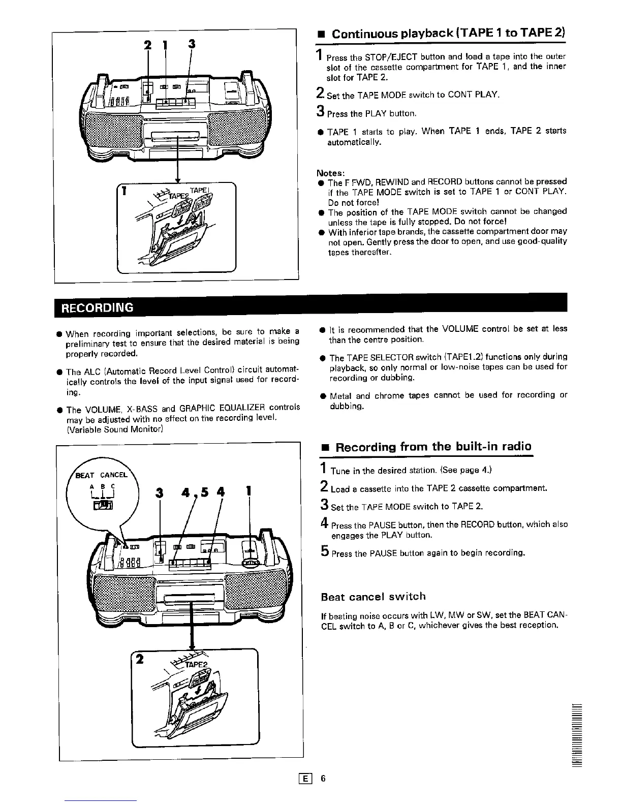 Sharp WQ-T360H - Continuous Playback (Tape 1 to Tape 2); Recording from the Built-In Radio