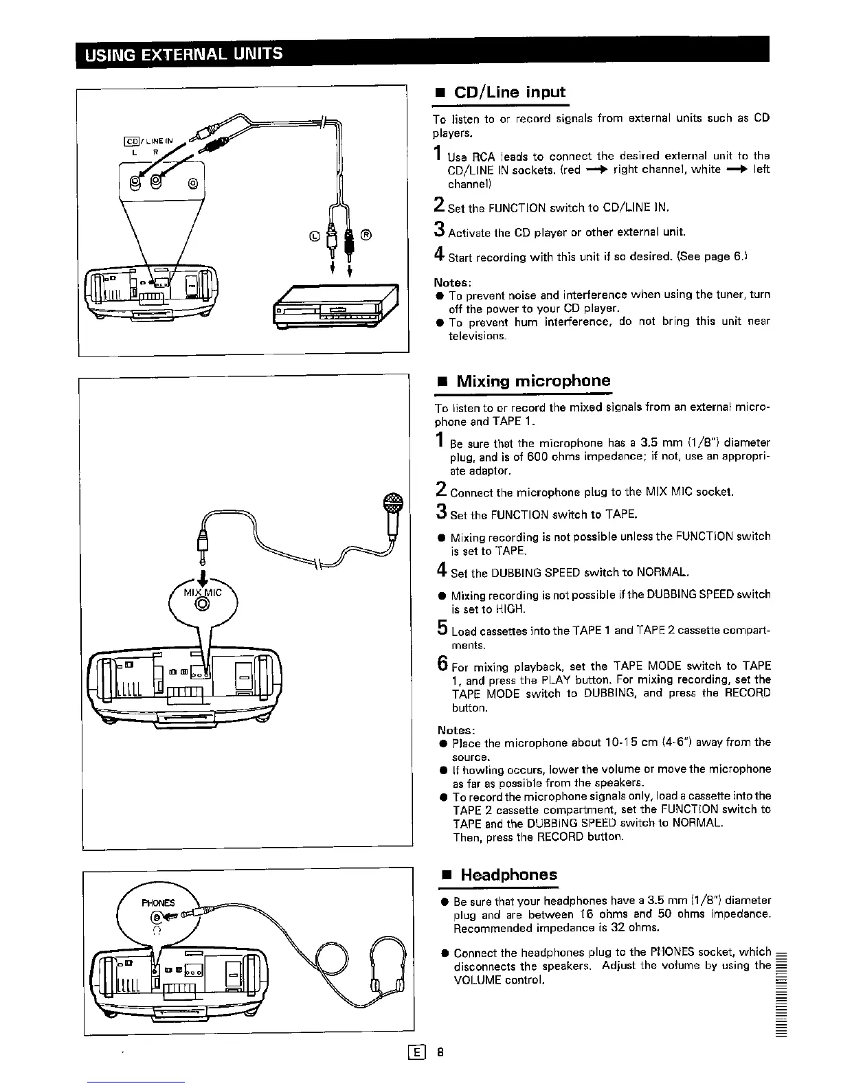 Sharp WQ-T360H - Using External Units; CD;Line Input; Mixing Microphone; Headphones