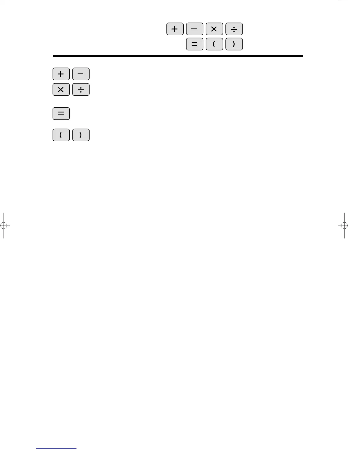 (addition), – (subtraction), x (multiplication), and ÷ (division).